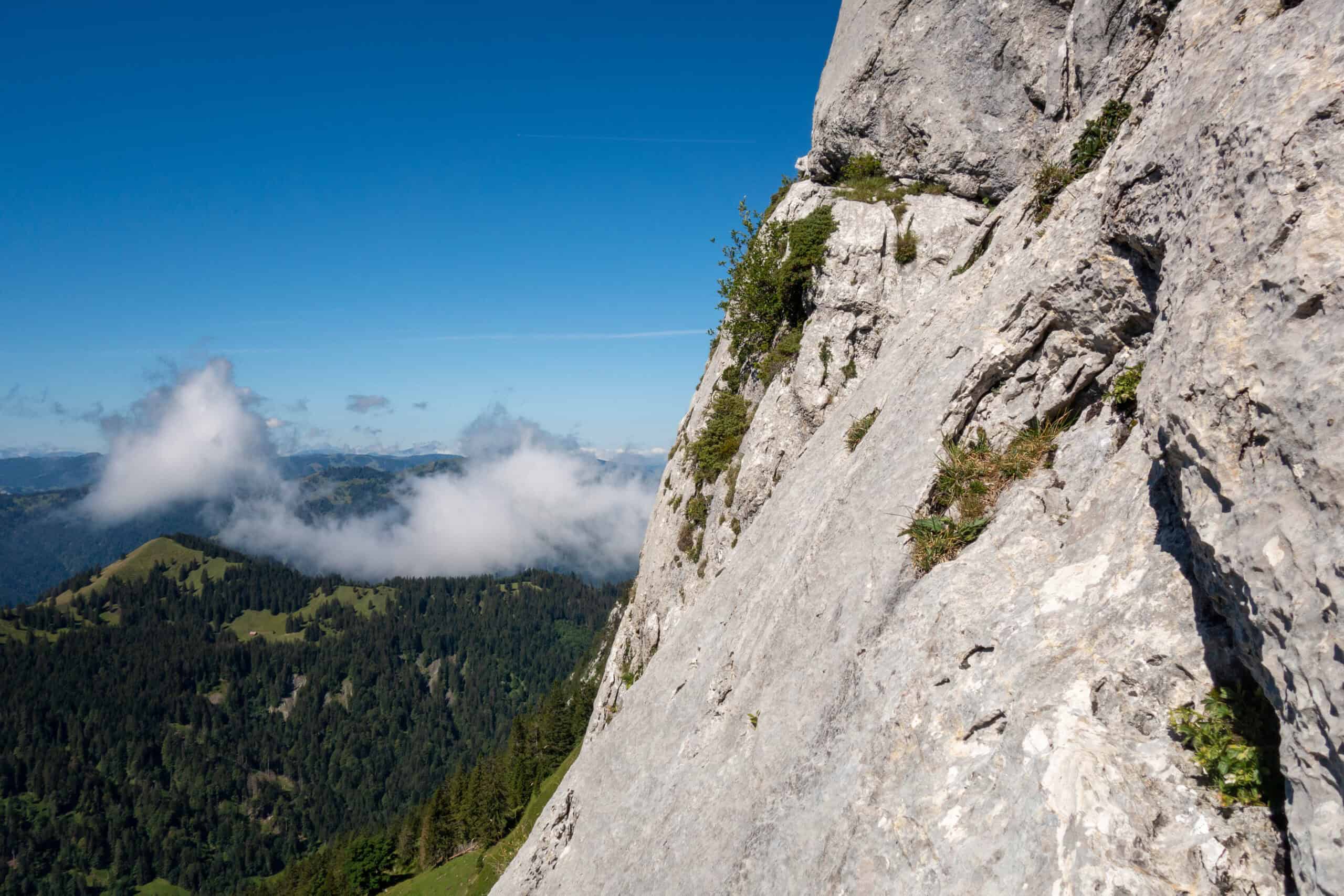 Der Südgrat des Chöpfenbergs ist eine Perle der Brügglerkette. Während viele die Wand vom Brüggler anstreben, sind wir mit dieser Überschreitung oft allein und geniessen die wärmende Sonne im Rücken und den herrlichen Kalkfelsen. Die Tour führt im 3. und 4. Grad über den griffigen und festen Grat zum Gipfel. Der Auf- und Abstieg ist vom Parkplatz Büelen aus bequem möglich. Eine der besseren Voralpentouren!