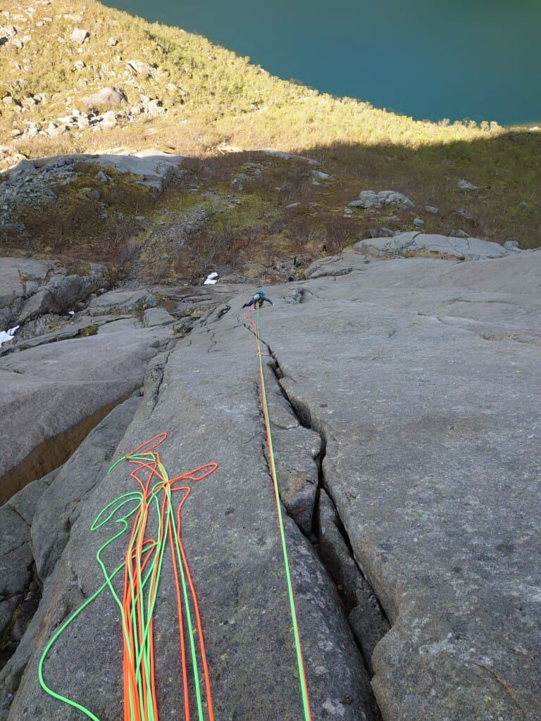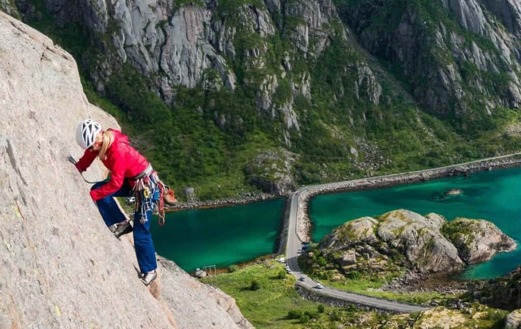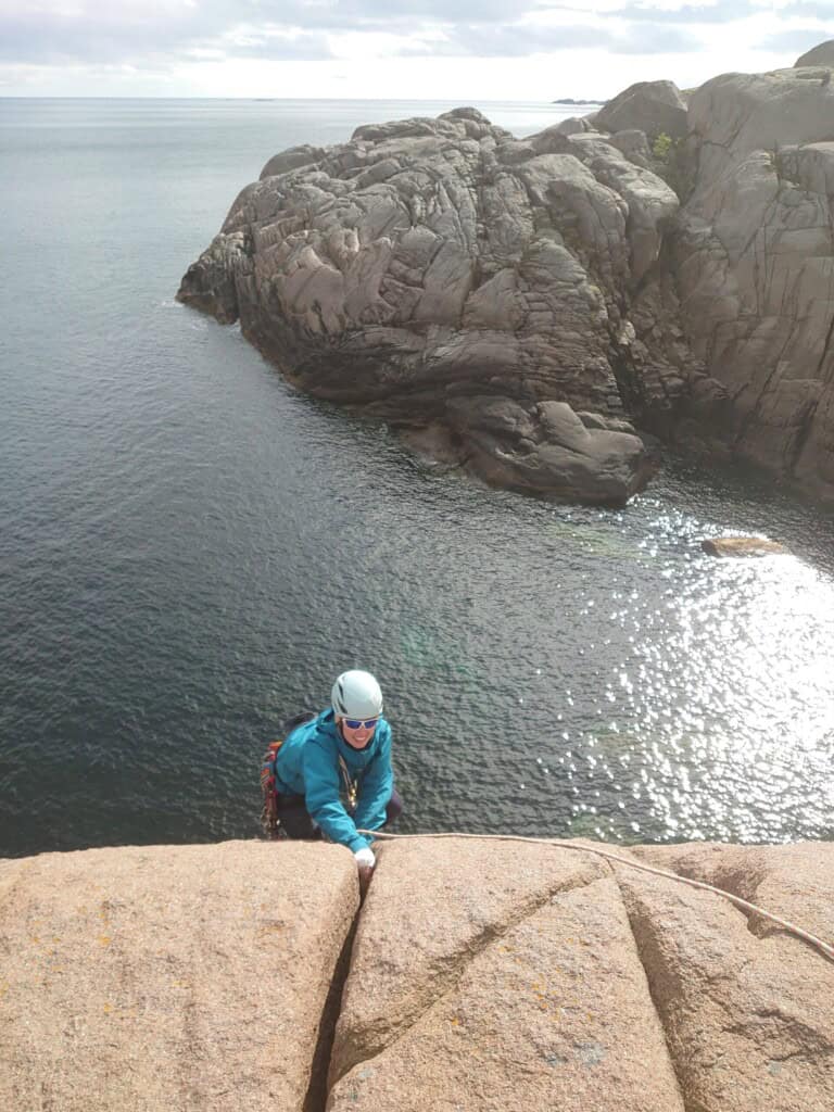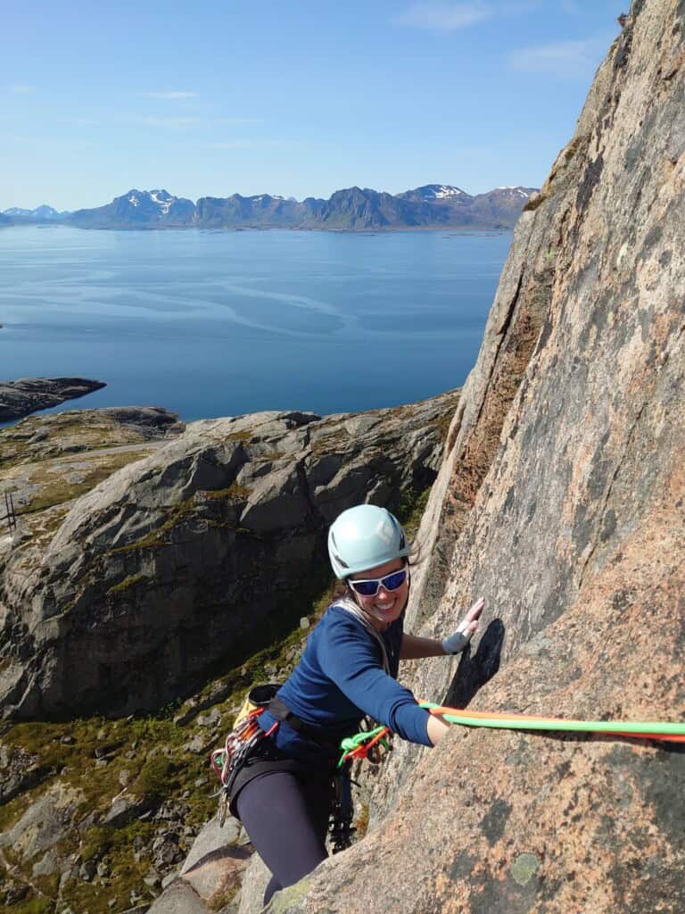 Traditionell wird in Norwegen so viel wie möglich mit mobilen Sicherungsgeräten wie zum Beispiel Friends und Keilen abgesichert. Es gibt aber auch unzählige gut abgesicherte Routen, in allen Schwierigkeitsgraden. Unser Fokus liegt auf der Bewegung und dem Erlebnis. Wir suchen für euch die passende Route, Klettern diese gemeinsam und geniessen die Natur und das Erlebnis. Die Aussicht während dem Klettern von Mehrseillängenrouten in den Lofoten ist atemberaubend und kaum zu erklären, dass musst du selbst erlebt haben! Wir lieben es zu klettern, sind uns aber bewusst, dass es noch viel mehr zu entdecken gibt als “nur” die Kletterwände der Lofoten.