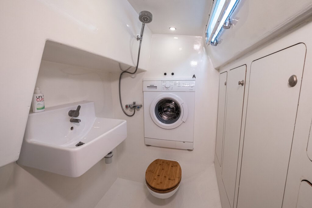 - Auf dem Schiff haben wir vier Doppelkojen mit Doppelbett, WC, Dusche, fließend Wasser, Heizung und genügend Platz zum Ausruhen. Natürlich ist es etwas enger als in einem Hotel.