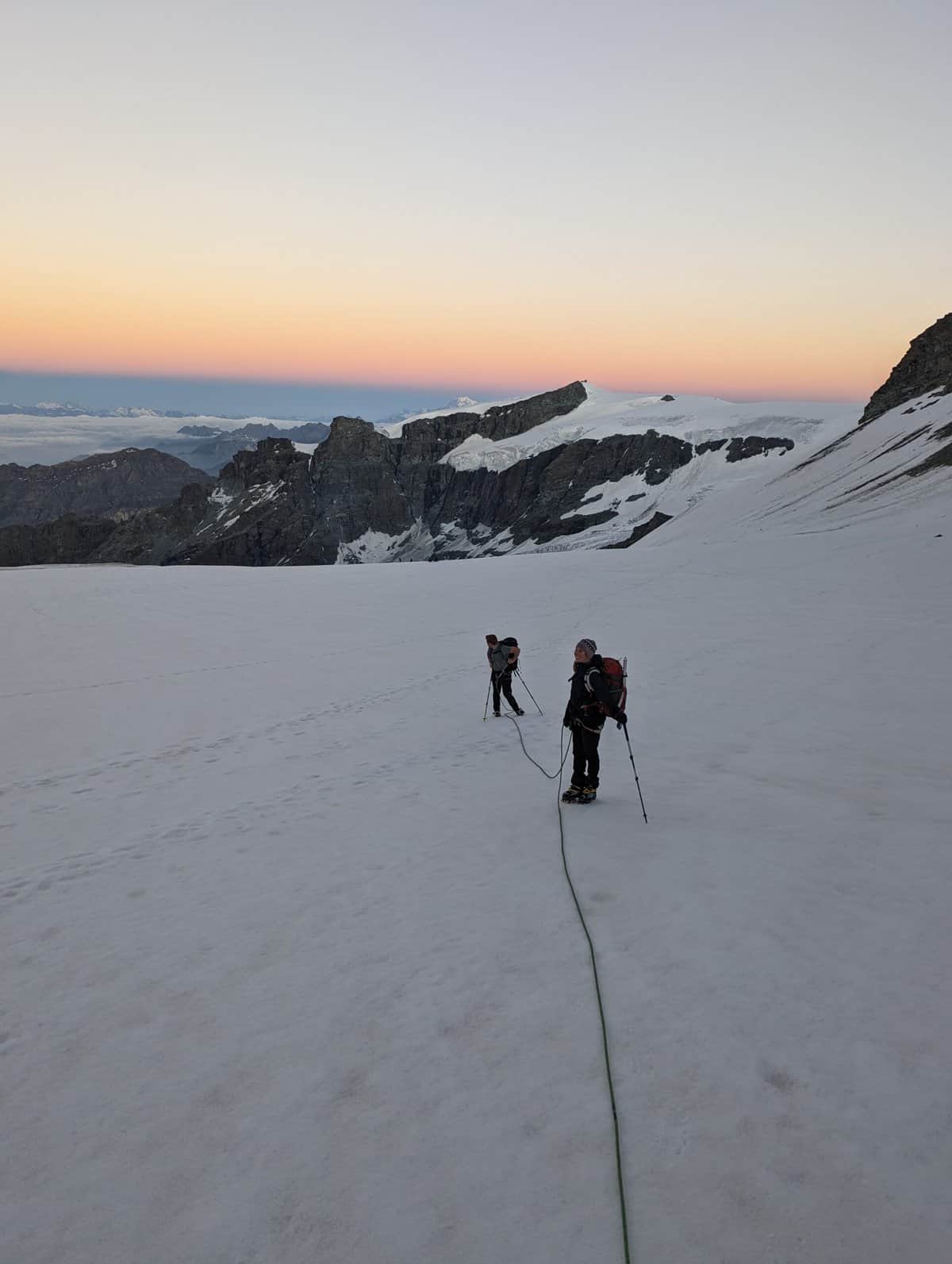Die Spaghettitour light ist eine fünftägige Hochtourenwoche über die Gletscher des Monte Rosa Massivs. Am ersten Tag steigen wir gemütlich ein: Wir gewöhnen uns an die Höhe und frischen den Umgang mit Steigeisen und Pickel auf. Danach beginnt die Durchquerung von Hütte zu Hütte, umgeben von Eis, Fels und atemberaubender Bergkulisse. Italienische Gastfreundschaft begleitet uns auf jedem Etappenziel: Primi, Secondi und starker Espresso lassen das Bergsteigerherz höher schlagen. Jeden Tag wartet ein neues Highlight: den Anfang macht das Breithorn als unser erster 4.000er. Anschliessend blicken wir von Süden tief in die Täler des Aostatals und auf die mächtigen Wände des Monte Rosa. In den letzten beiden Tagen erklimmen wir weitere 4.000er und übernachten schliesslich in der höchstgelegenen Hütte Europas – der Capanna Margherita auf 4.554 m. Was für ein Erlebnis! Der Abstieg führt uns ein letztes Mal über beeindruckende Gletscher, vorbei an der Monte Rosa Hütte und zurück in die Zivilisation, mit Rucksack und einem Herz voller Erinnerungen.