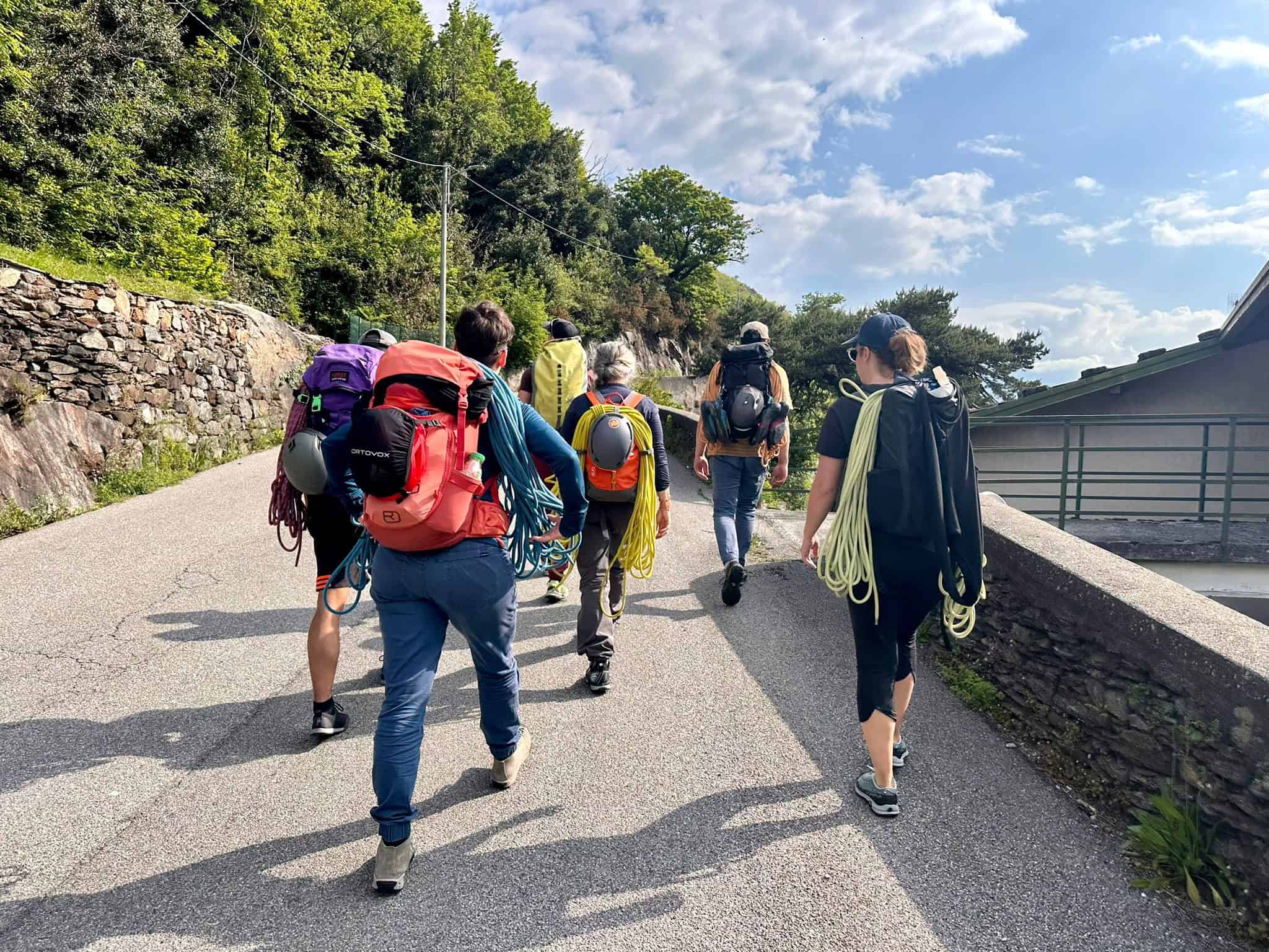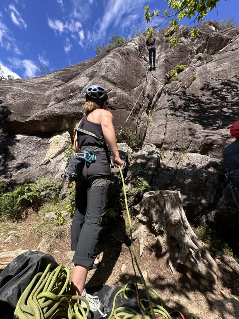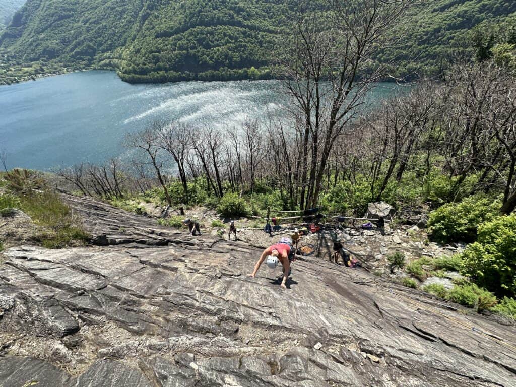 Noch auf dem Weg nach Lecco besuchen wir einen ersten Klettergarten und Klettern. Das Bergschaft Team schaut aber erst einmal zu und sammelt Informationen. Wir notieren, beobachten dich und Klettern die gleichen Routen wie du. So können wir deine Bewegungsabläufe, deinen Index und deine Kraft einschätzen, das ist unser Grundstein für die kommenden Tage!