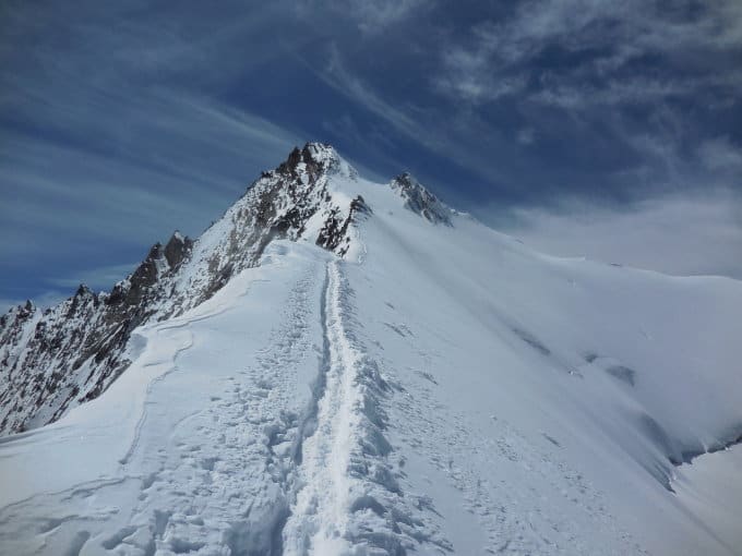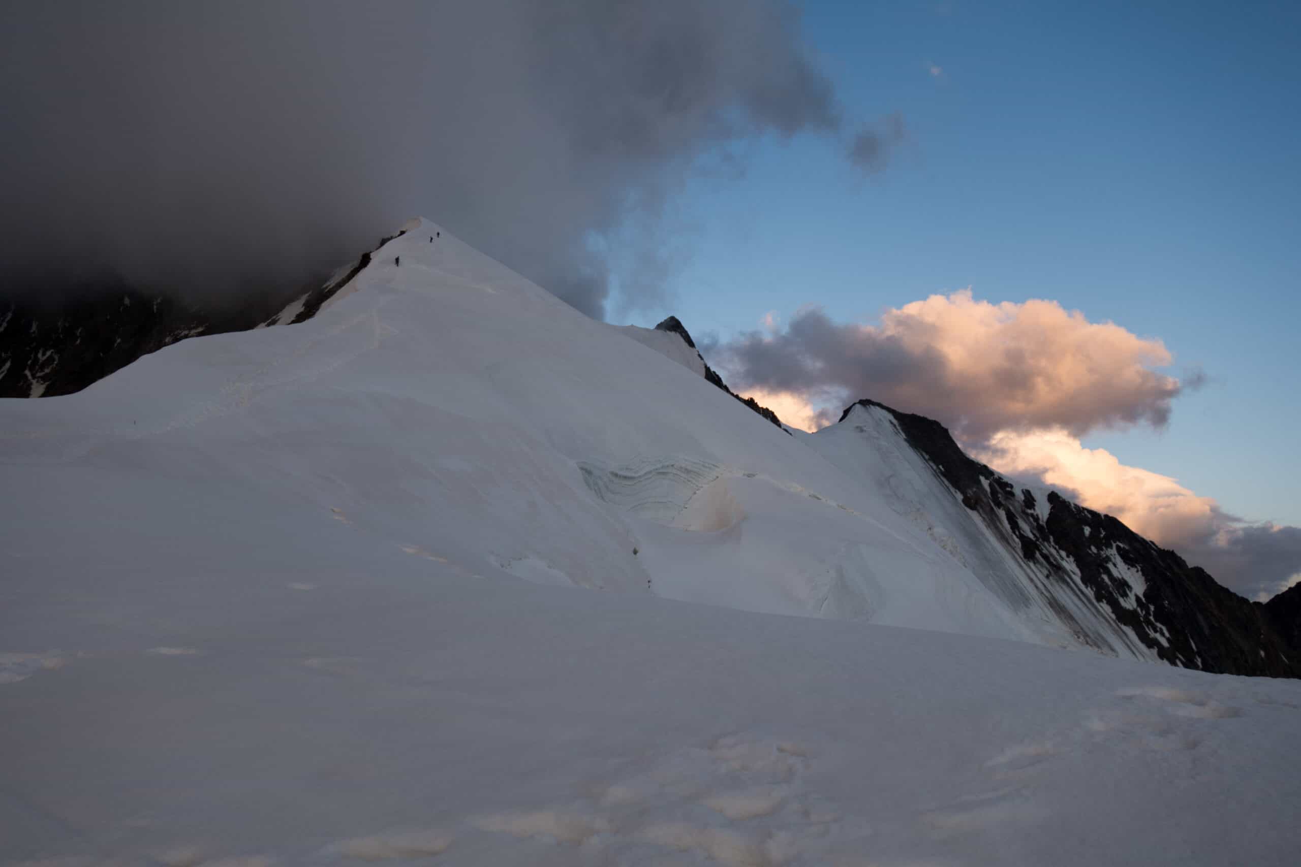 Abwechslungsreiche Hochtour auf einen prominenten 4000er über einen riesigen Gletscher, einen hübschen Firngrat und einen coolen Felsaufschwung.