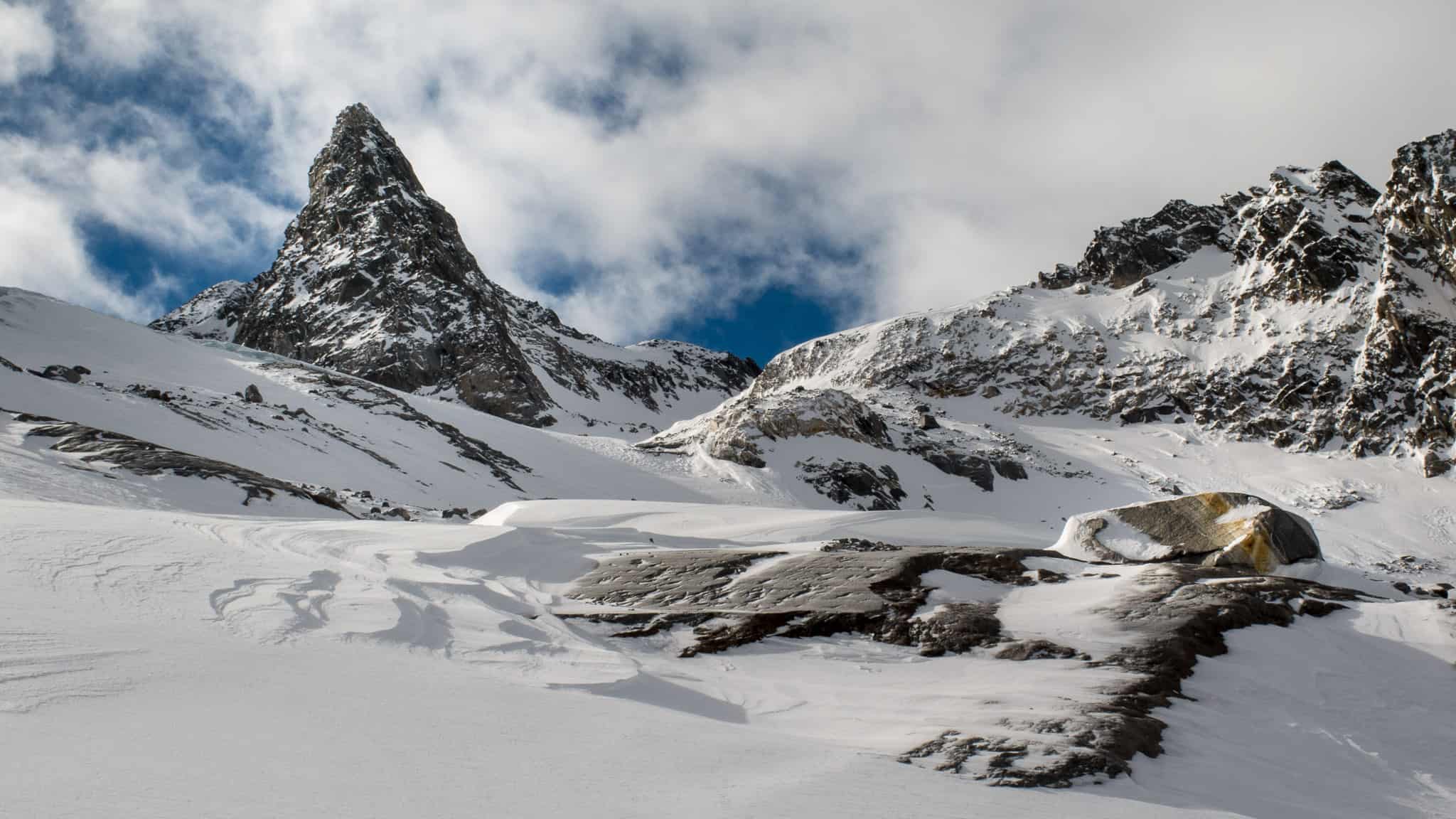 Durch einsame Hochgebirgslandschaften mit imposanten Abfahrten.