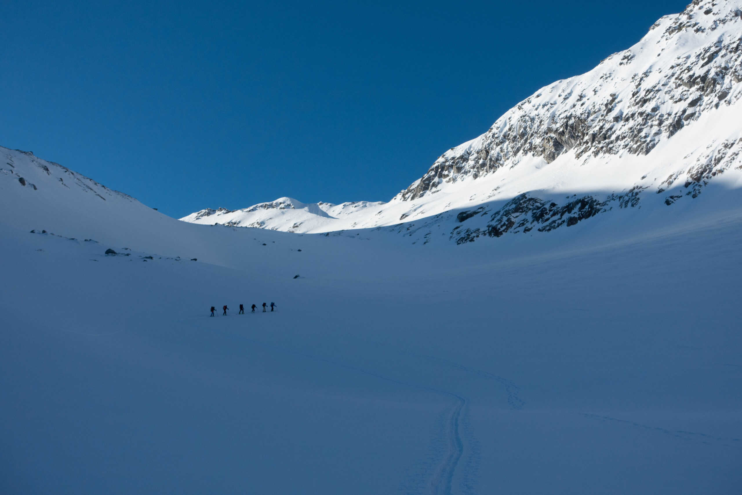 Ein Tag voller Kontraste: Von der hochalpinen Gletscherwelt des Vortags tauchen wir heute in die einsame Greina-Ebene ein. Ein urtümliches Hochtal mit breiten Mulden, Couloirs und überraschenden Geländeformen. Je nach Verhältnissen gibt es viele Varianten für Aufstiege und Abfahrten. Ziel ist die gemütliche Terrihütte, wo wir übernachten.