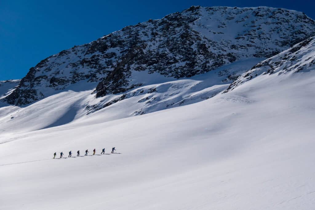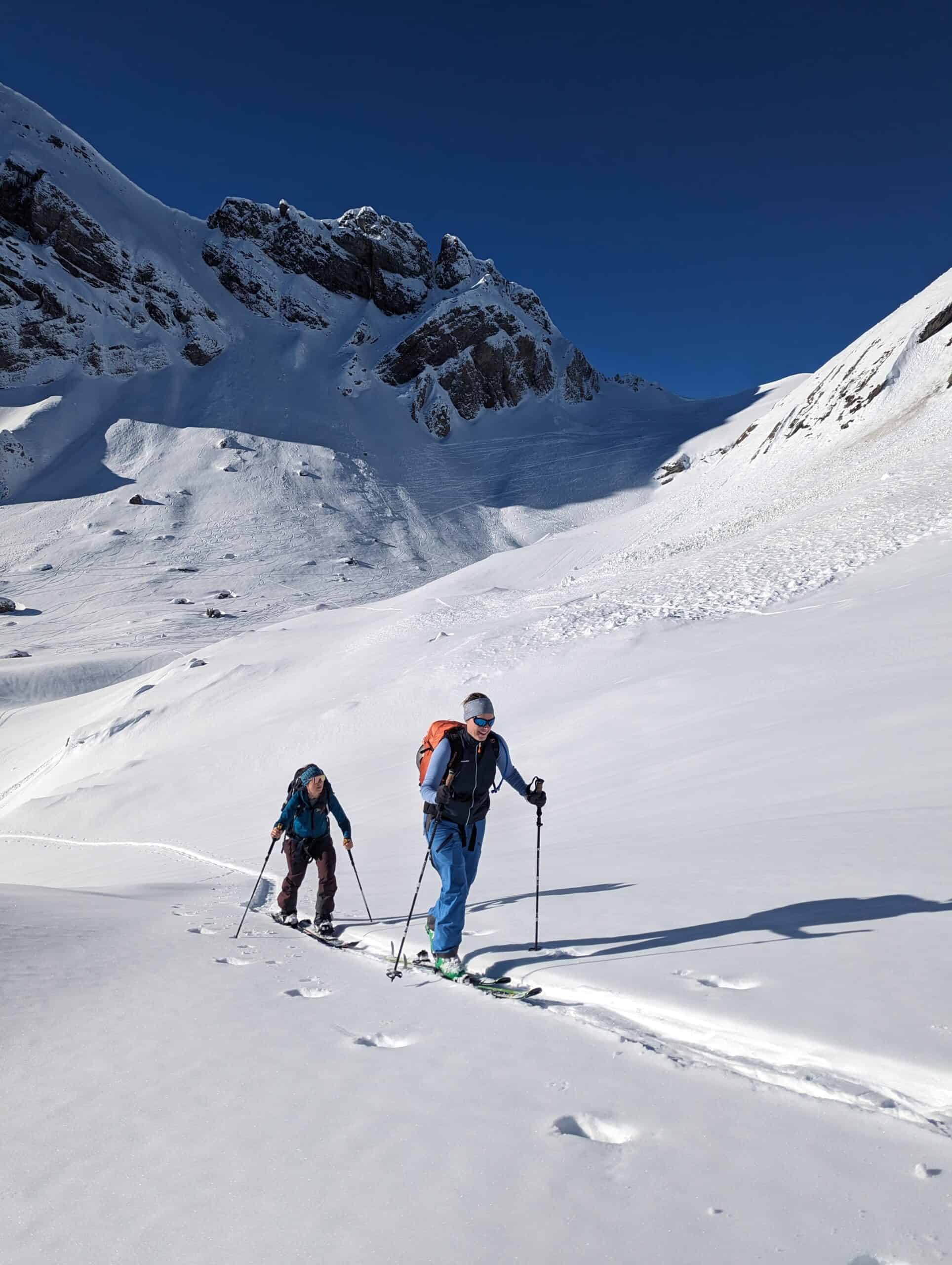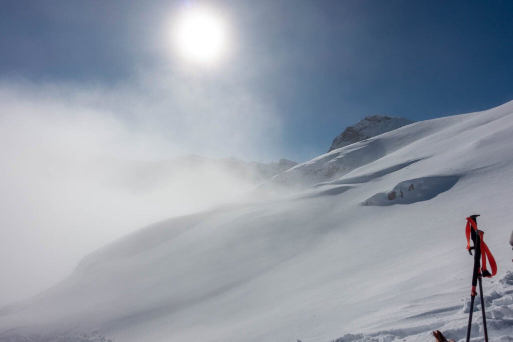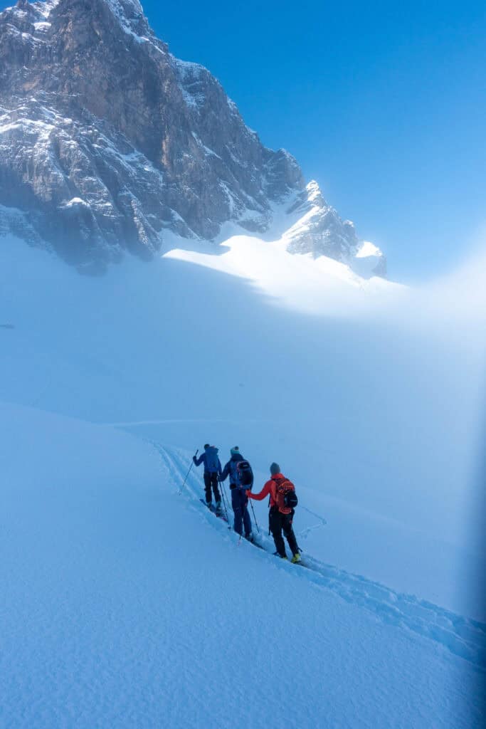 - Beherrschen der Skitourentechnik mit dessen Basics (Fellen, Spitzkehren).