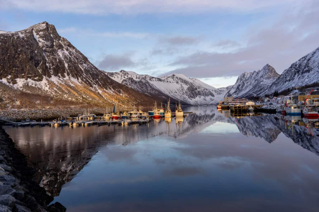 Senja ist ein typische Insel Norwegens, geprägt durch die Fischerkultur. Es hat hier überall die roten Rorbu, kleine Häfen und frabige Fischerboote. Die locals sind etwas ruhig, aber erzählen den interessierten Touristen gerne von ihren Fischer-Abentuern. Wir essen im lokalen Restaurant und erhalten hier einen weiteren Einblick in ihr leben.