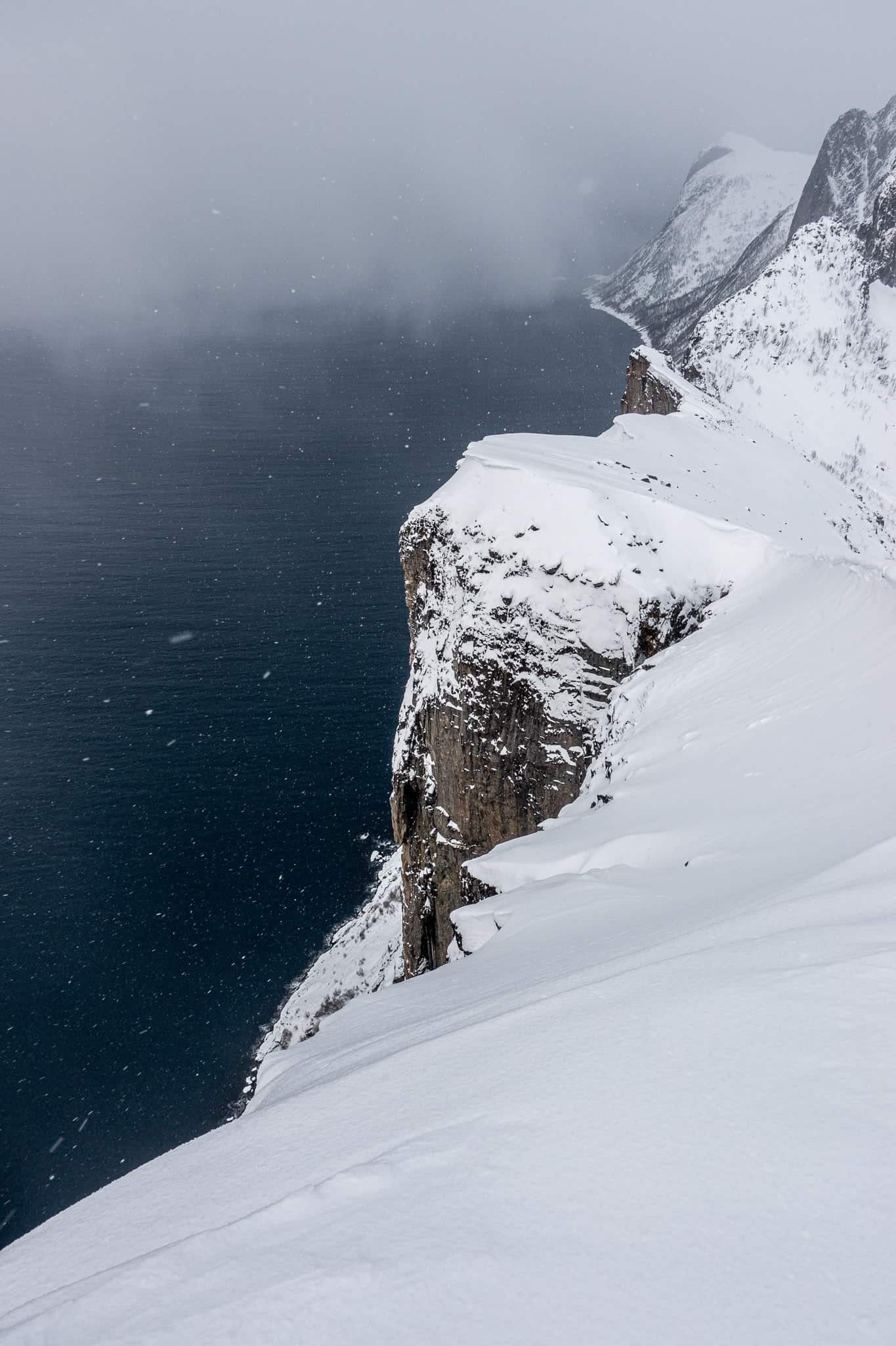Senja ist eine Insel, geprägt von vielen Fjorden, wo die Felswände oder Skitourenhänge direkt ins Meer kommen. Dabei wechseln sich Felsige Küsten und sandige Buchten ab und bieten so Kontrast und einmalige Szenerie.