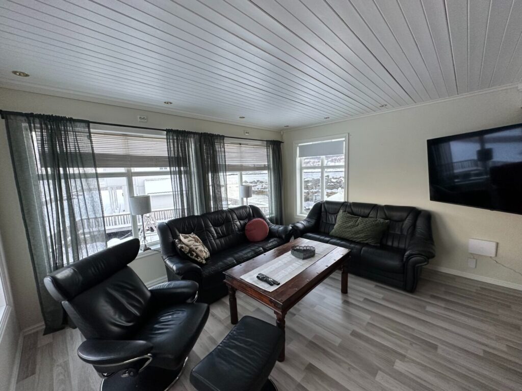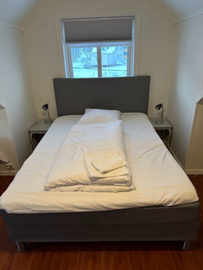 Wir hausen in einem geräumigen Haus, gleich am Meer. Hier haben wir 5 Schlafzimmer, 2 Einzelzimmer und 3 Doppelzimmer. Ebenfalls hat es 2 Badezimmer und eine Küche. Wir geniessen die lokale Halbpension vom dazugehörigem Restaurant. Zudem hat es einen Hot Tub und eine Sauna und am Abend ist es schön dunkel um die Nordlichter zu geniessen!