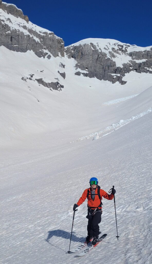 Heute wartet der krönende Abschluss. Wir steigen durch das Obertal hoch und erreichen zwischen den steilen Felswänden den Gipfel vom Fünffingerstock. Eine imposante Abfahrt über die Gletscher vom Sustligebiet bringt uns zum zweiten Anstieg und auf den Gipfel vom Grassen. Von hier fahren wir über die weiten Hänge des Grassen über den Firnalpeligletscher nach Engelberg ab. Nochmals eine grandiose Abfahrt als Abschluss. Glücklich, müde, stolz und erfüllt von den vielen neuen Erlebnissen kommen wir gemeinsam in Engelberg an.