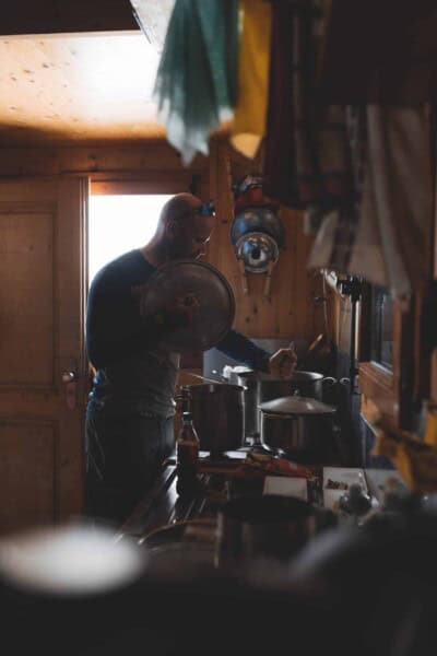 For Joni Hedinger, the Cabane de Chanrion is one of the most beautiful mountain huts on the Haute Route. Recently renovated and enlarged, you quickly notice in the cosy main room that great attention has been paid to detail here. The marbled enamel crockery, for example, is beautiful.