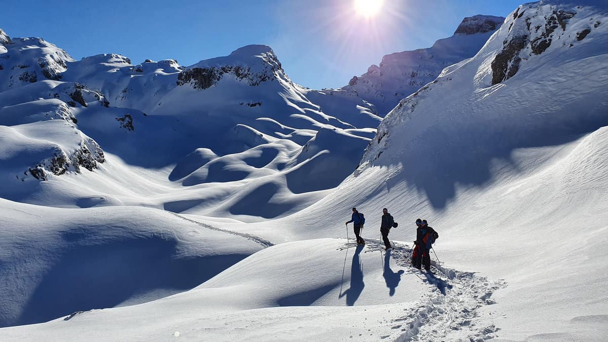 The Bannalper round tour is one of the best tours in the Engelberg valley: 1000 metres ascent and 2400 metres descent, what more could you want? On Saturday, Clint will take you on this tour in his home terrain! Beautiful weather and fresh powder await on Saturday! The tour starts with a cable car ride up to Bannalp, a beautiful ascent to Chaiserstuel. We continue with a long descent into the Grosstal. There are many slopes here and we will choose the best ones. We take the second cable car back up to have more fun with a second ascent and a second descent. The tour ends back at the valley station of the Bannalp cable car.