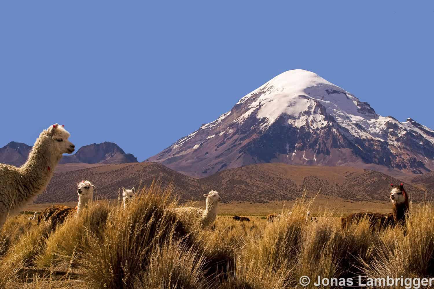 We start our journey in the manageable, colonial and pretty town of Sucre at 2800 metres above sea level (Unesco World Heritage Site since 1991). We spend the first two nights here to avoid any problems with the altitude, in contrast to a start in the much higher La Paz (3600 to 4200 metres above sea level). From here, with a stop at the legendary silver mines of Potosí, we travel to Uyuni, where the largest salt lake in the world is located. We then spend several days travelling through the very varied landscape of south-western Bolivia. Here we have the opportunity to climb the first of two technically easy 6000 metre peaks, the Uturuncu volcano (6008m), as a day tour. We then travel via Salar de Uyuni to the Sajama National Park. Surrounded by numerous, mostly snow-covered 6000 metre peaks, we have the opportunity to climb our second technically easy 6000 metre peak (Cerro Acotango - 6052m). After the ascent and a rest in natural thermal springs, we travel to the highest navigable lake in the world, Lake Titicaca, and later on to the Island of the Sun. The view from the highest point of the Sun Island of numerous snow-capped 6000 metre peaks and the Moon Island is breathtaking. From Lake Titicaca we travel back to La Paz. The next day, a bike excursion (optional) into the evergreen, humid jungle awaits us. We descend on a road from 4600 to 1200 metres. Cars take us back to La Paz. From here we travel back to Switzerland.
