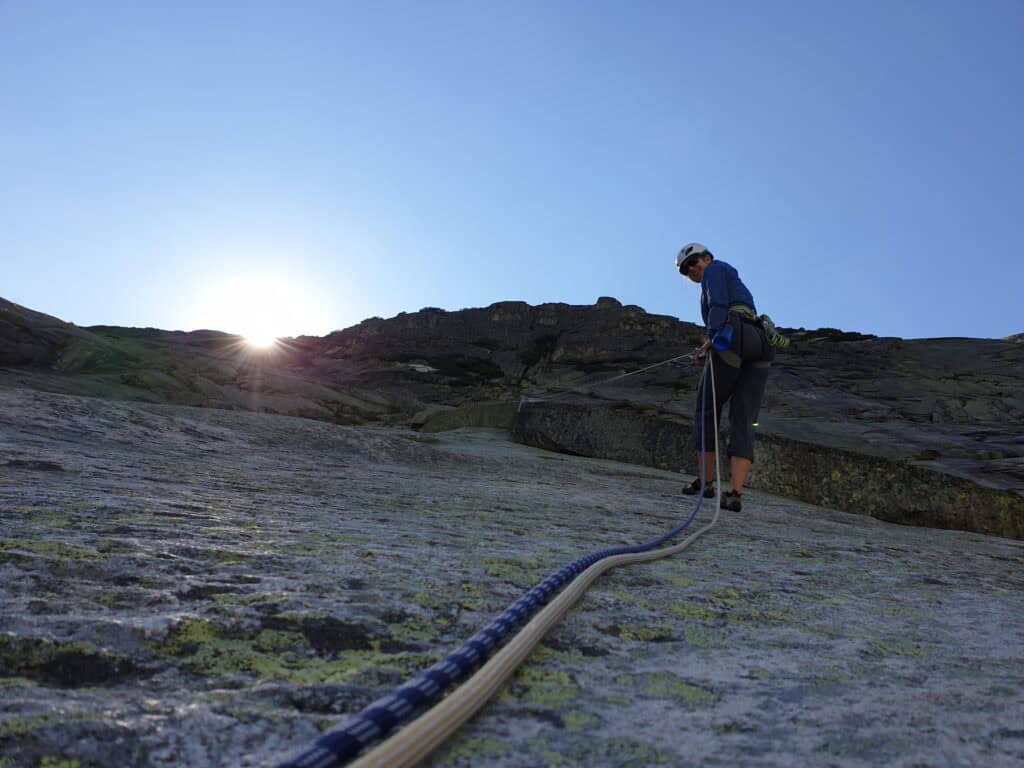 We refresh and expand your existing knowledge so that you can climb an alpine multi-pitch route independently and safely after the course. The three days will provide you with knowledge in planning, belay station construction, rope handling, mobile belay devices, theory and application of rescue and first aid as well as fun and climbing in the most beautiful rock.