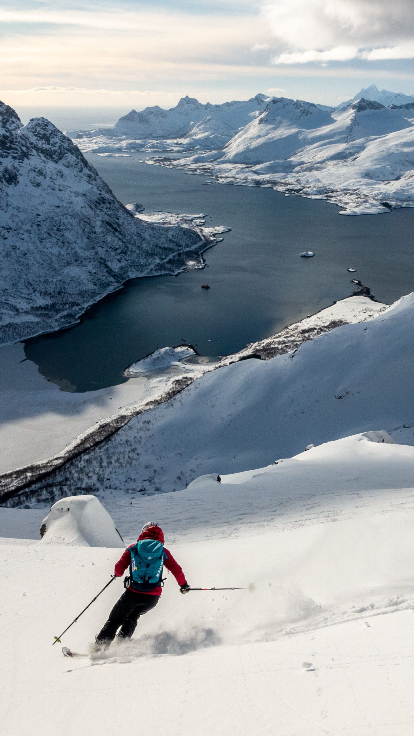 So come with us to ski mountaineering in the fjords of Lofoten Norway: