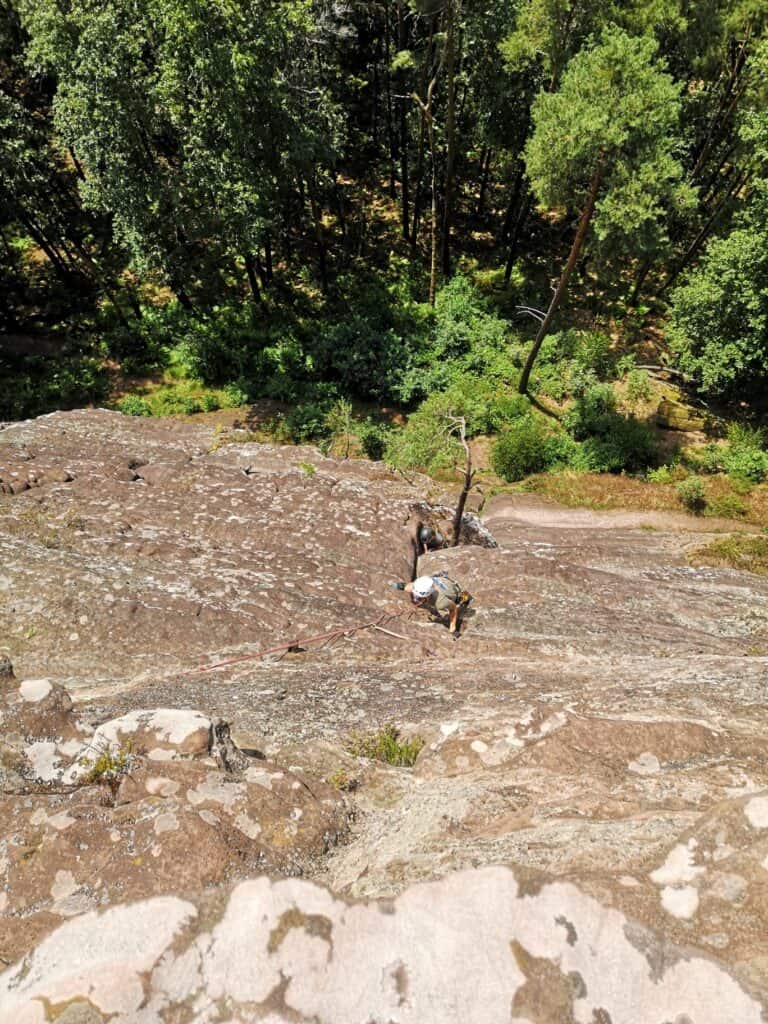 In the morning we start with training and climbing, during different lessons you can acquire knowledge and skills. We start with crack climbing technique and work our way forward with the aim of being able to climb a route free and clean. We spend the remaining days in the surrounding areas around our accommodation. The journey times are short and there are red sandstone towers scattered throughout the forests, where we learn how to set belay points under the supervision and coaching of our mountain guide and of course do a lot of climbing.Contents: