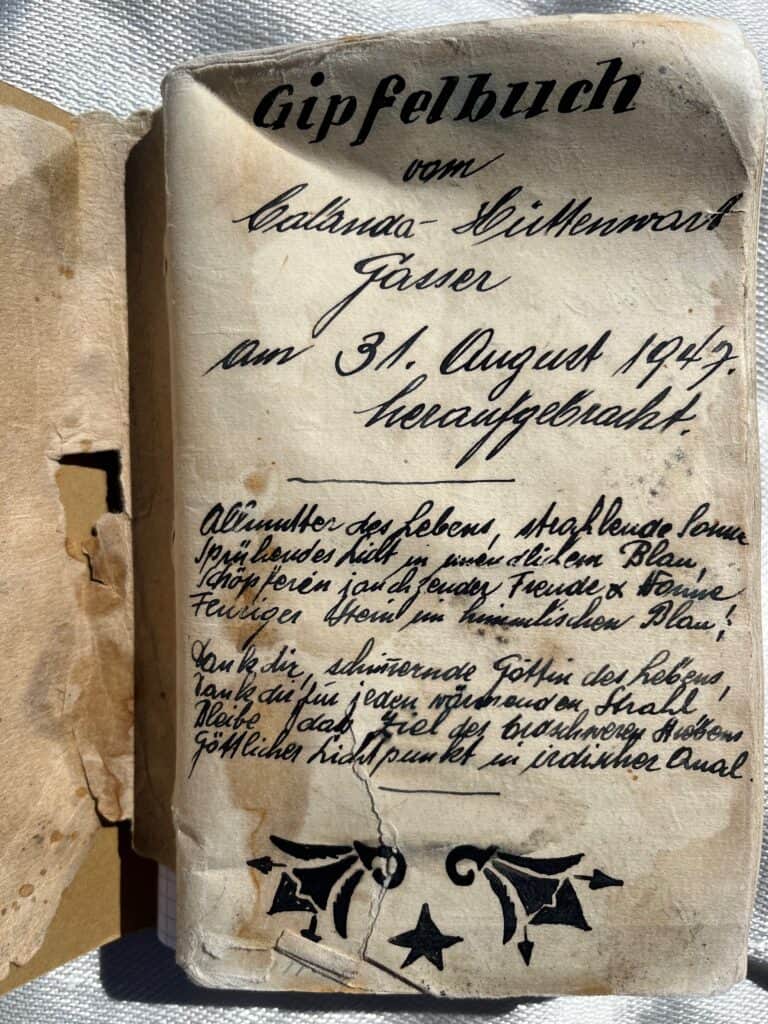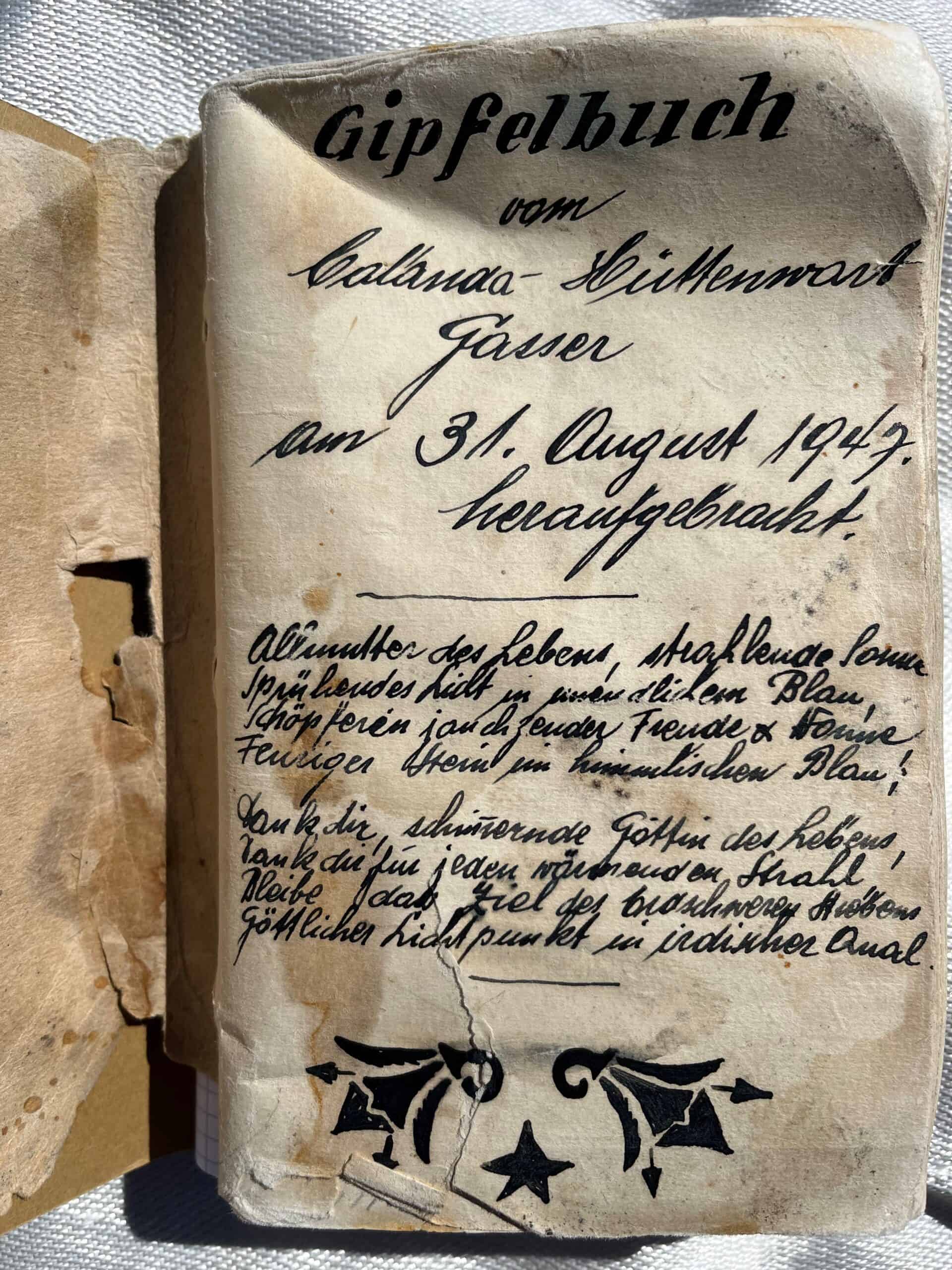 We cross the Calanda together via Berger Calanda to Rossfallenspitz and on to Haldensteiner Calanda. A lonely high tour far above the Chur Rhine Valley with beautiful scrambling sections, impressive rock formations and a few airy but easy climbing sections. We cycle together to the Vazer Alp and start the tour here. We reach the three peaks of the Chur Calanda via increasingly lonely paths and easy climbing sections. On this tour we find a very old summit book ... from 1947! On the descent, we partly abseil down and pass the Calanda hut. Maybe there's still a fresh Calanda here? A really great tour!