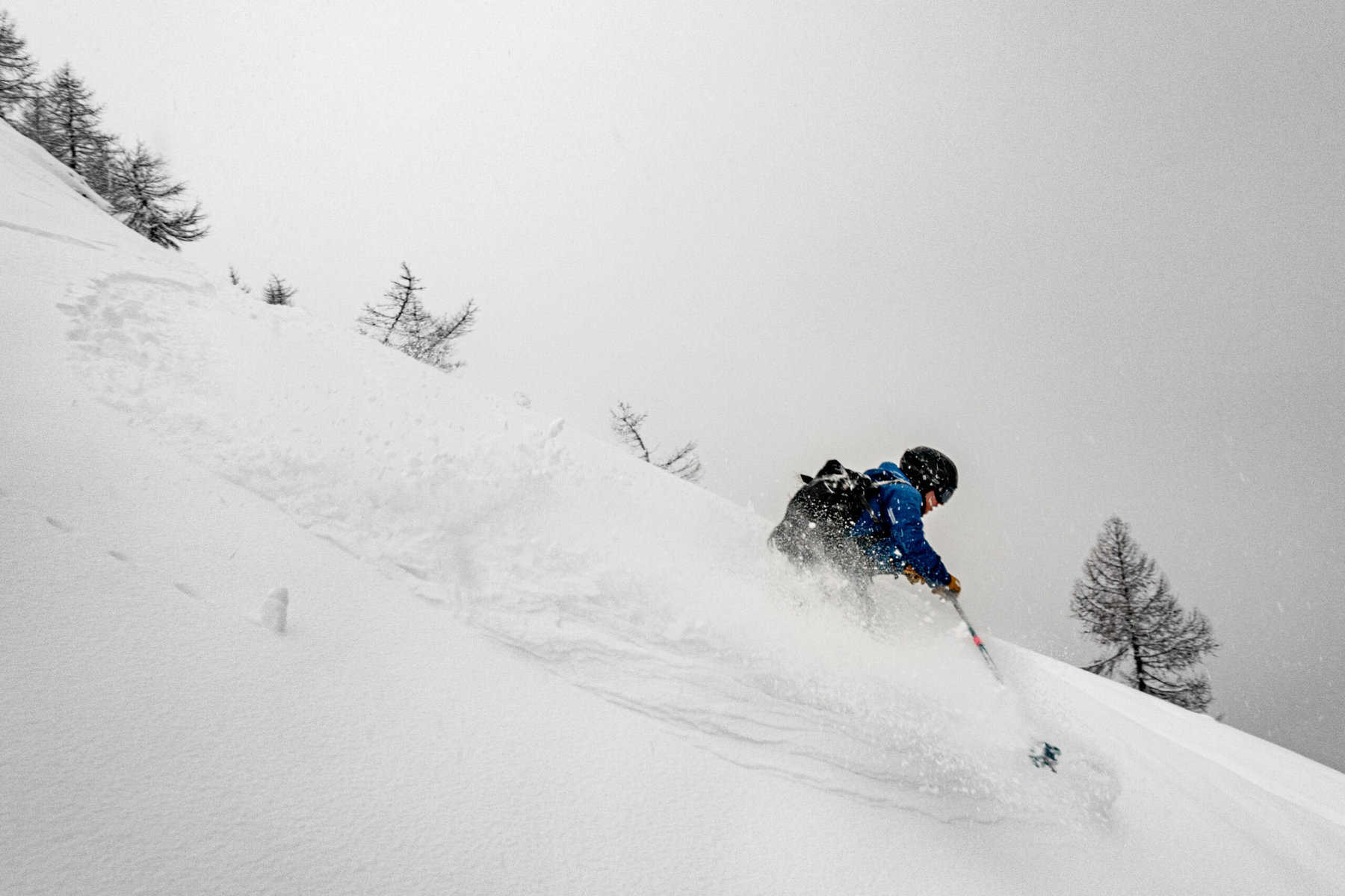 The Airolo ski area may not be the best known for freeriding, but it offers some wonderful freeride runs! And there are some in the sparse forest, perfect for enjoying the fresh snow during the snowfall and covering a few metres of descent. It snows quite a bit from Friday to Sunday, so we are travelling at the right altitudes in Airolo and the weather improves slightly in the afternoon. Airolo is also easily accessible by train!