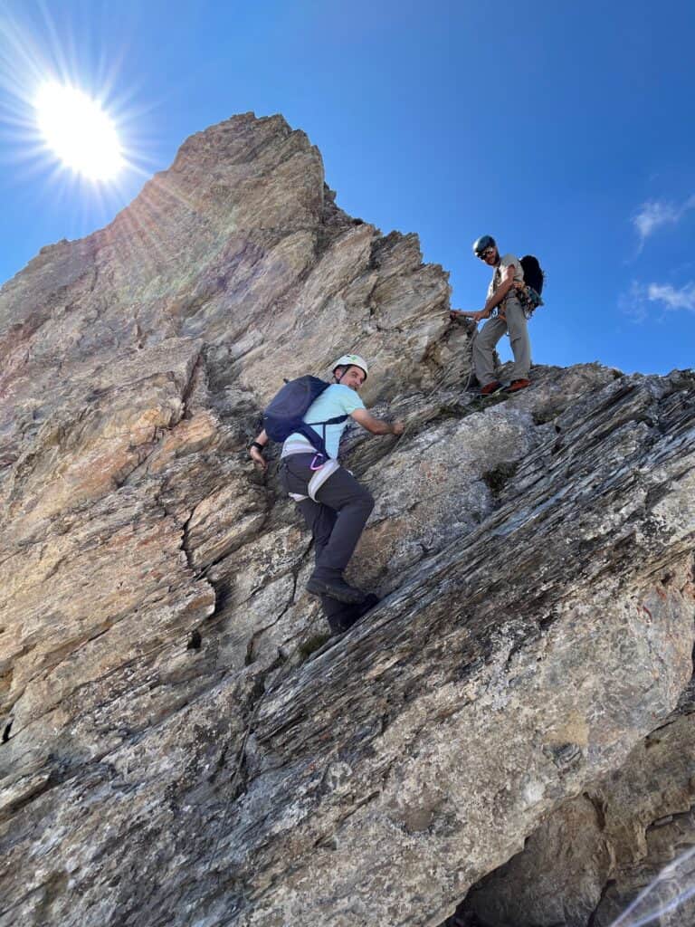 High tours and alpine mountain tours often lead over rocky ridges - airy, exposed and full of adventure. The climbing is usually easy, but the demands on surefootedness, overview and efficient rope technique are high. This is exactly where our course comes in. Together we will work on the basics of safe movement on the ridge. You will learn how to belay and move efficiently on the rock - from micro rope lengths to rope shortening and abseiling. Whether as a refresher or an introduction: the course is practically orientated. On the first day, we practise the most important techniques on easy terrain. On the following two days, we will apply what we have learnt directly on two varied ridge tours. In this way, you will deepen your knowledge, gain routine - and experience how beautiful scrambling in exposed terrain can be.