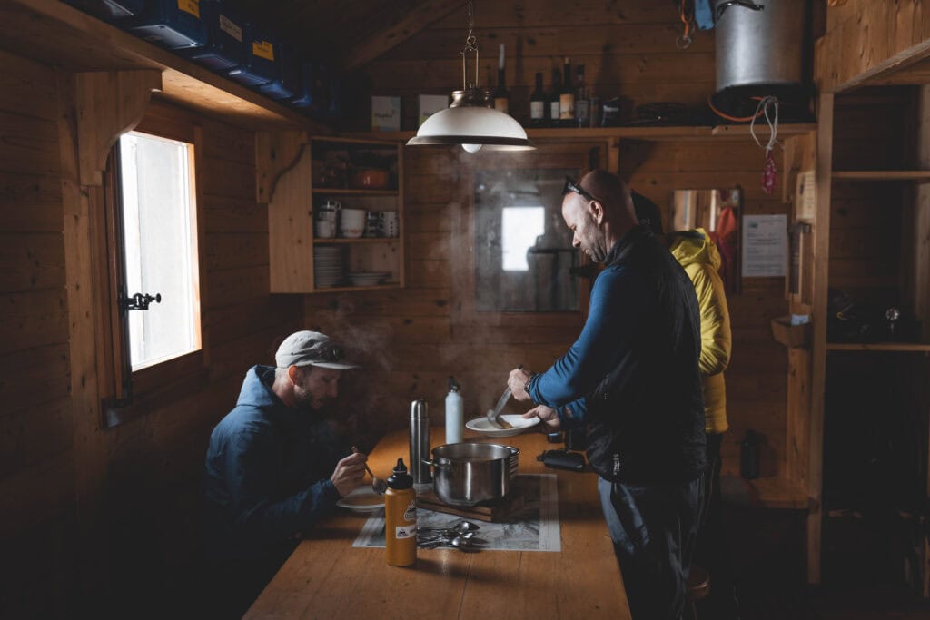We cater for ourselves in the hut, melting snow and cooking together make this day unique and incredibly exciting.