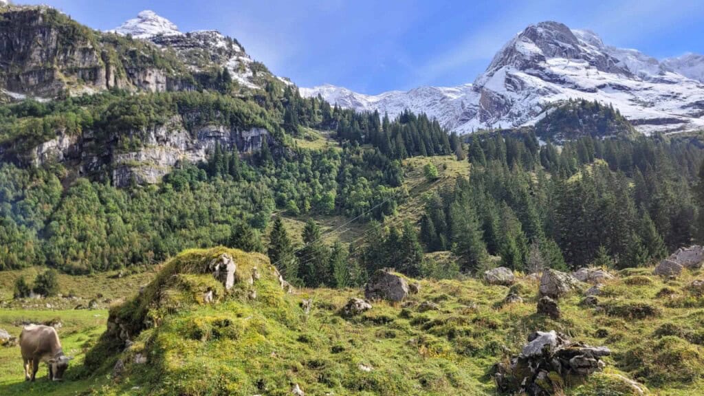 - We meet in Klöntal. During the outward journey we already had the opportunity to take a look at our tour destination. The Schwanden ridge drops steeply on both the north and south sides. We climb up to the hut using our own muscle power. After about 1.5 hours of ascent, we reach the dwarf village of "Chäserern". The small houses in the middle of the valley have an interesting, timeless and "grumpy" appearance. After a break and with our strength restored, we tackle the final ascent, with our first destination, the Glärnischhütte, already in sight.