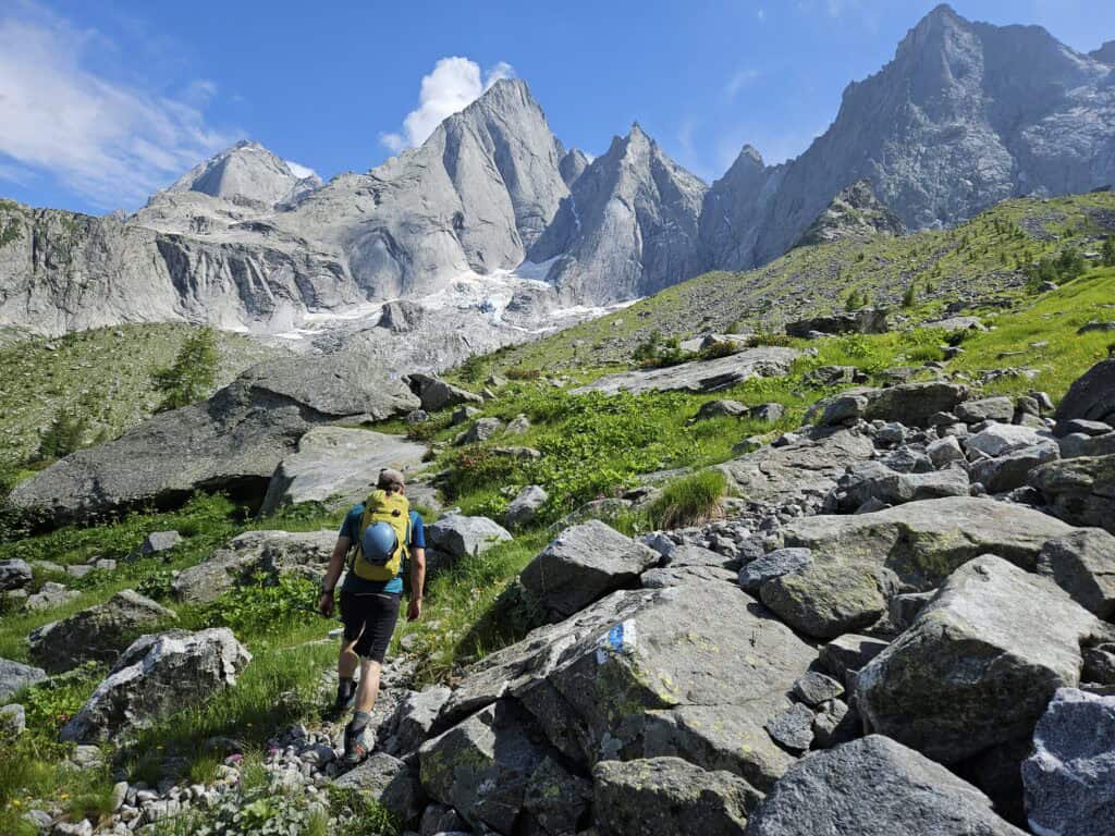 We then set off from Bondo on the hut ascent through the green Val Bondasca to the Sasc Furä hut and enjoy the uniqueness of Bergell.