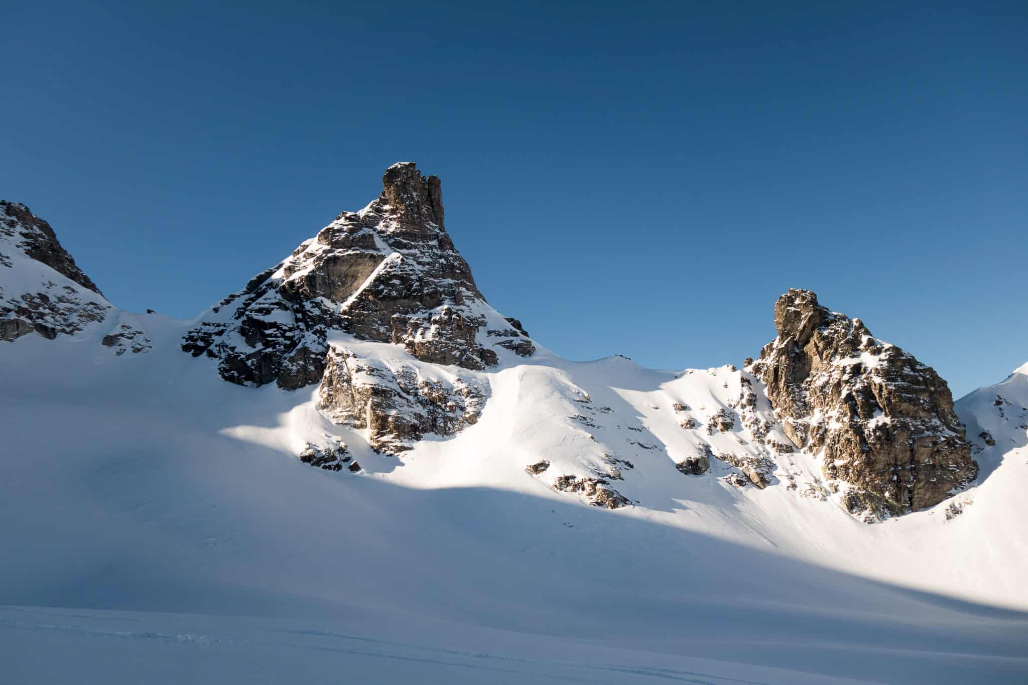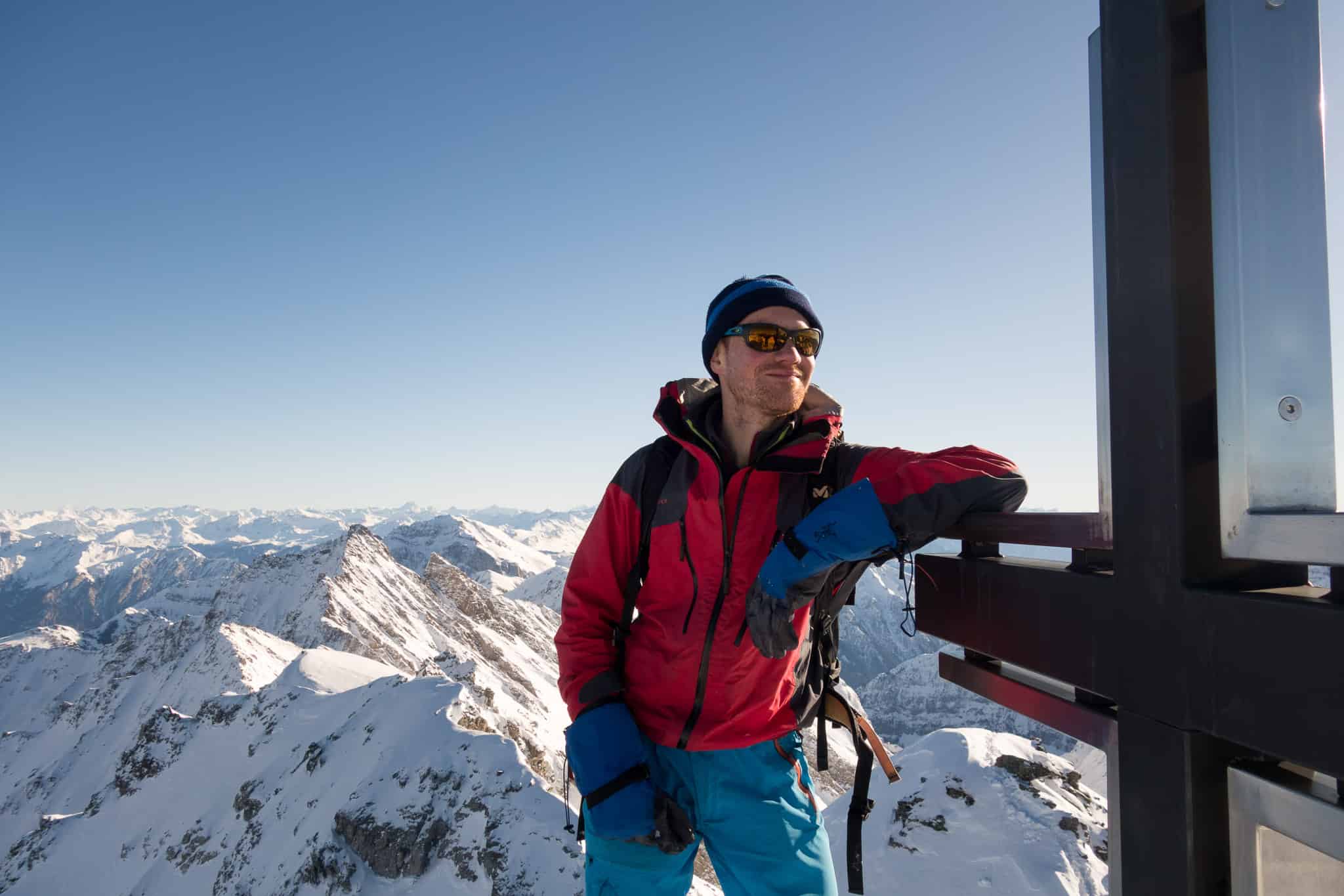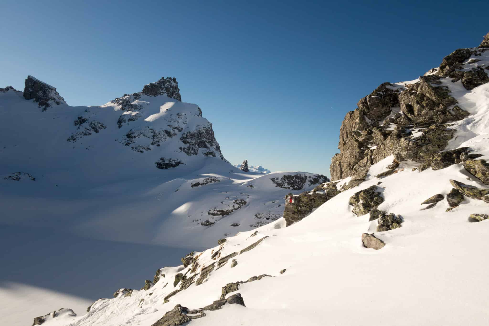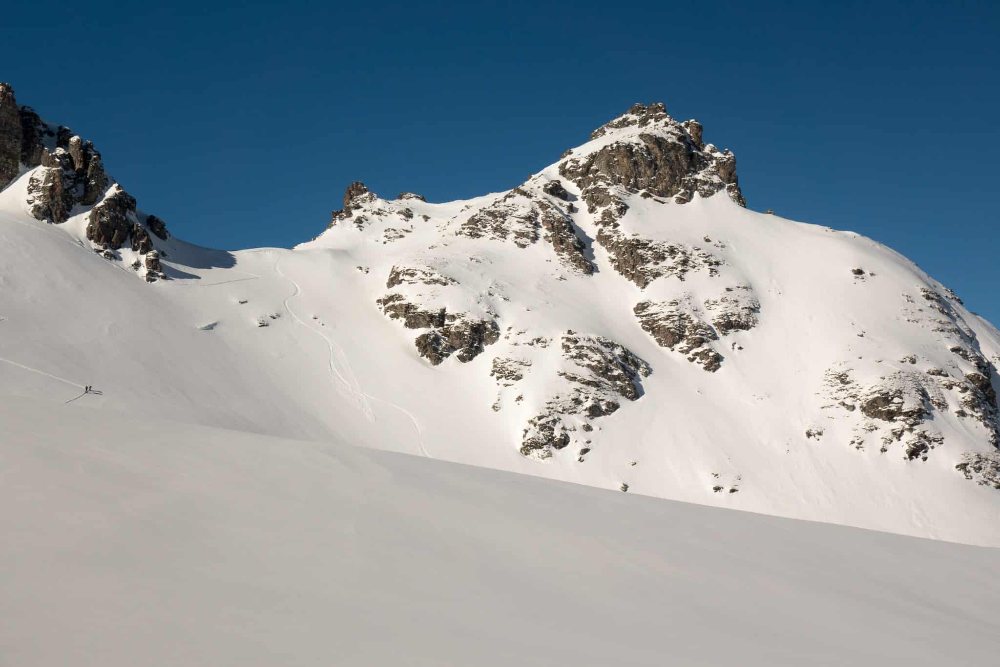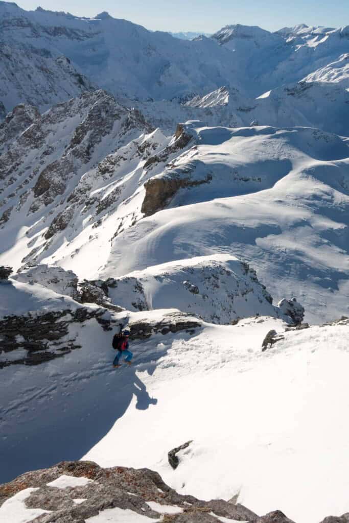 Alpine summit and beautiful skiing terrain: 700 metres ascent, 2400 metres descent!