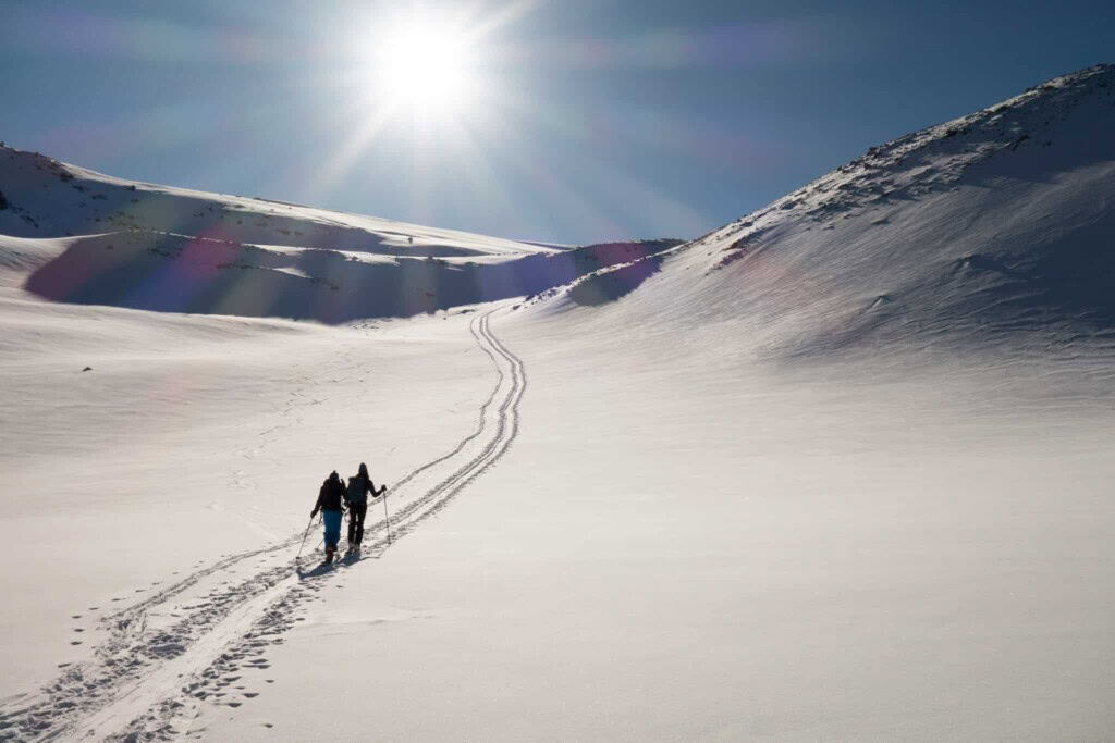 - Mastering the ski touring technique with its basics (skins, hairpin turns).