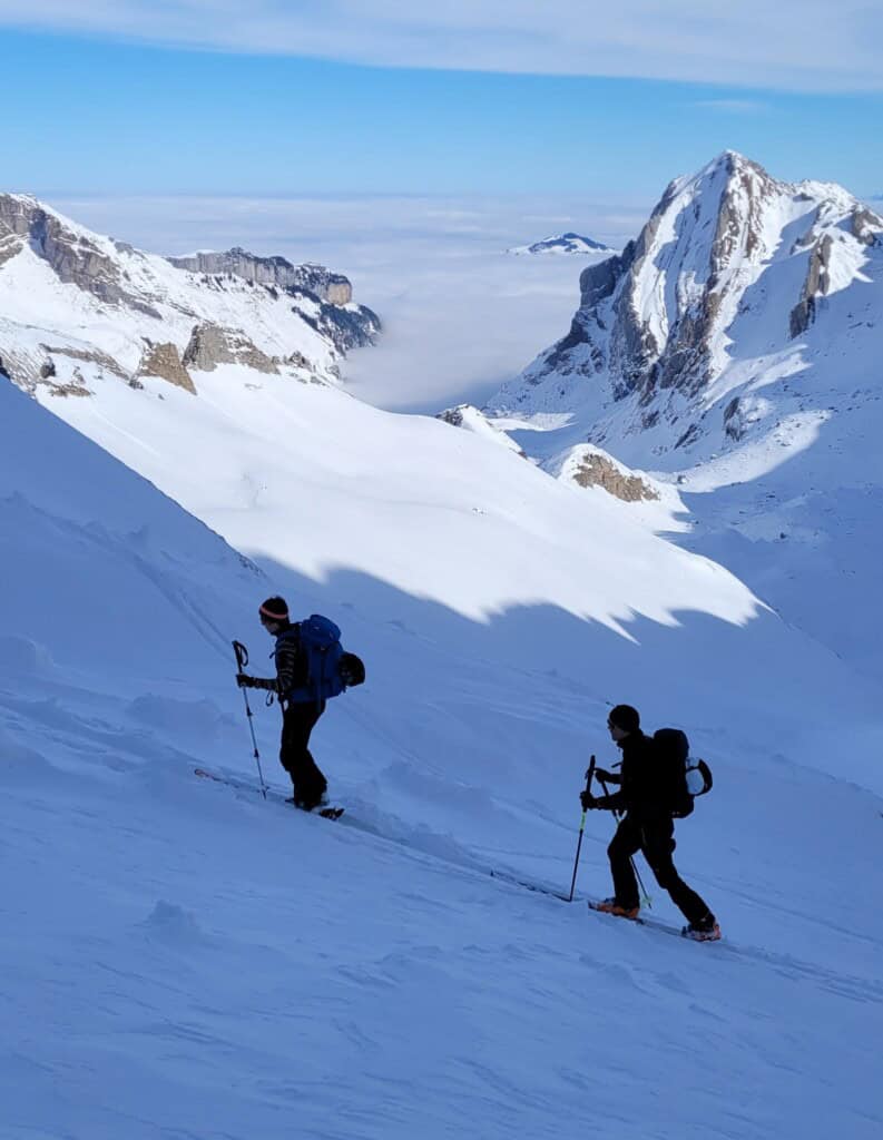 - Mastering the ski touring technique with its basics (skins, hairpin turns).