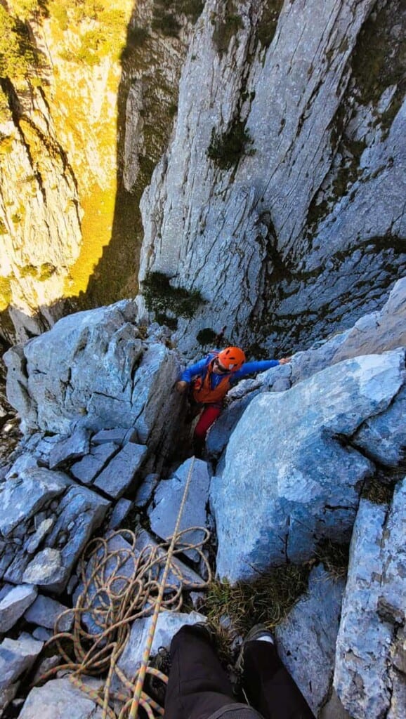 - Du kannst im 4 Grad nachklettern, dies ist ohne Probleme in Zustiegs- oder Bergschuhen möglich.