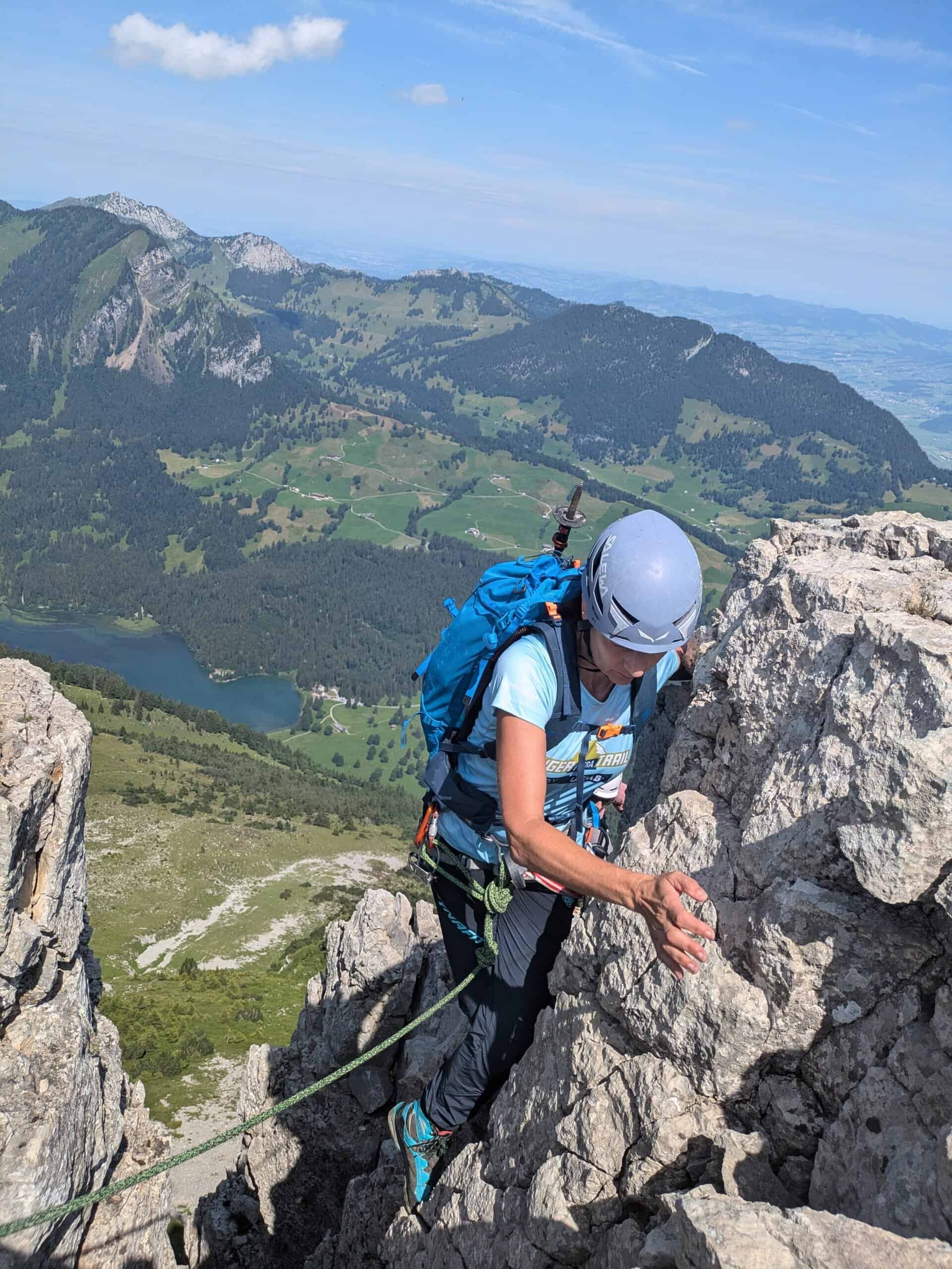 The east ridge leads to the summit of the Rautispitz. The ridge offers quite a few metres of climbing. Sometimes a little easier and sometimes a little more exciting. In between, there are always flatter sections of the ridge. The difficulty is often moderate at grade II and III. The key section is in the fourth grade. However, it is only short and can be easily defused and secured by the mountain guide. A magnificent tour in sharp limestone awaits you! At the summit we can enjoy the magnificent view of the Churfisten and the Glarus Alps!
