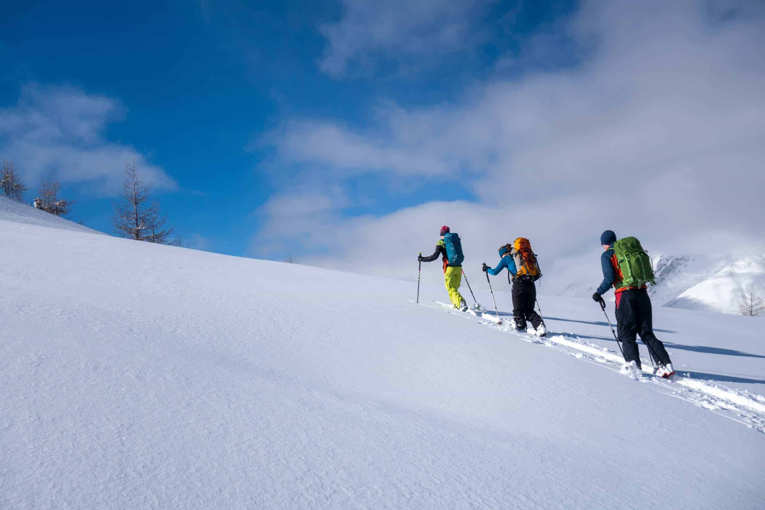 - Mastering the ski touring technique with its basics (skins, hairpin turns).