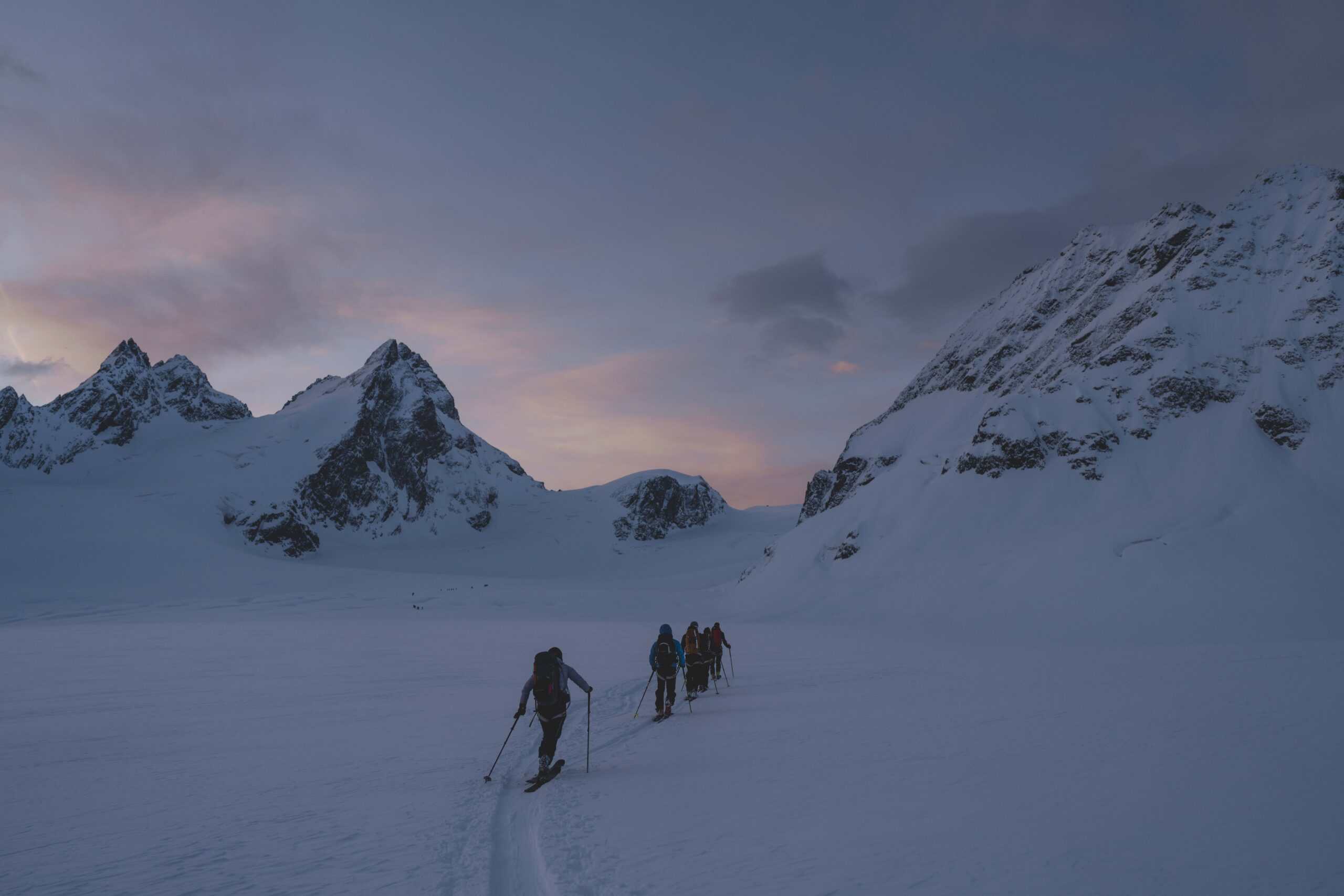 In these four-day ski touring coaching days, you will learn how to deepen your knowledge in alpine terrain. Together with a mountain guide, we repeat important techniques, practise rope handling and apply what you have learnt directly on varied tours. Step by step, you will take on more responsibility for planning and carrying out your own tours, gaining confidence and routine for your own challenging alpine ski tours.