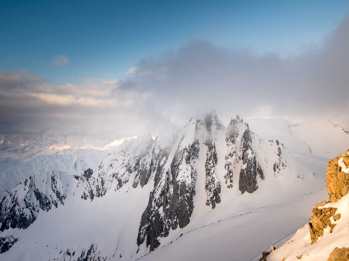 Would you like to get to know the high mountains on skis, but have no experience with ropes, crampons or glaciers? In this preparatory course, we will teach you the most important basics for safe high-altitude ski tours. Together we will practise how to walk correctly with crampons, how to use an ice axe and rope and how to carry your skis efficiently on your rucksack. To gain further experience, we also ski down a short and steep section with rope support. This will give you the confidence you need to take part in guided high-altitude ski tours and Haute Routes in the Alps and experience your first 4,000 metre peaks on skis.