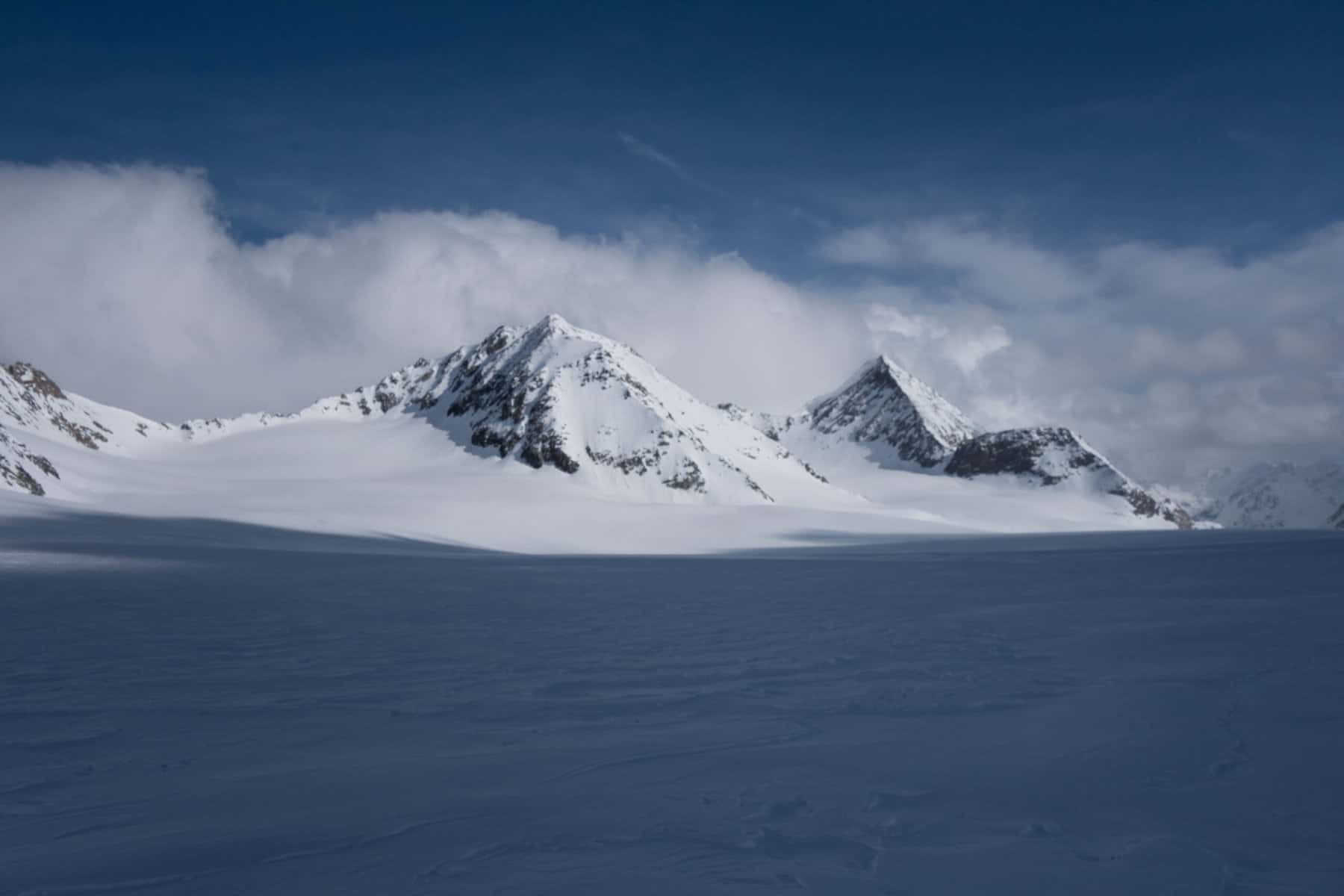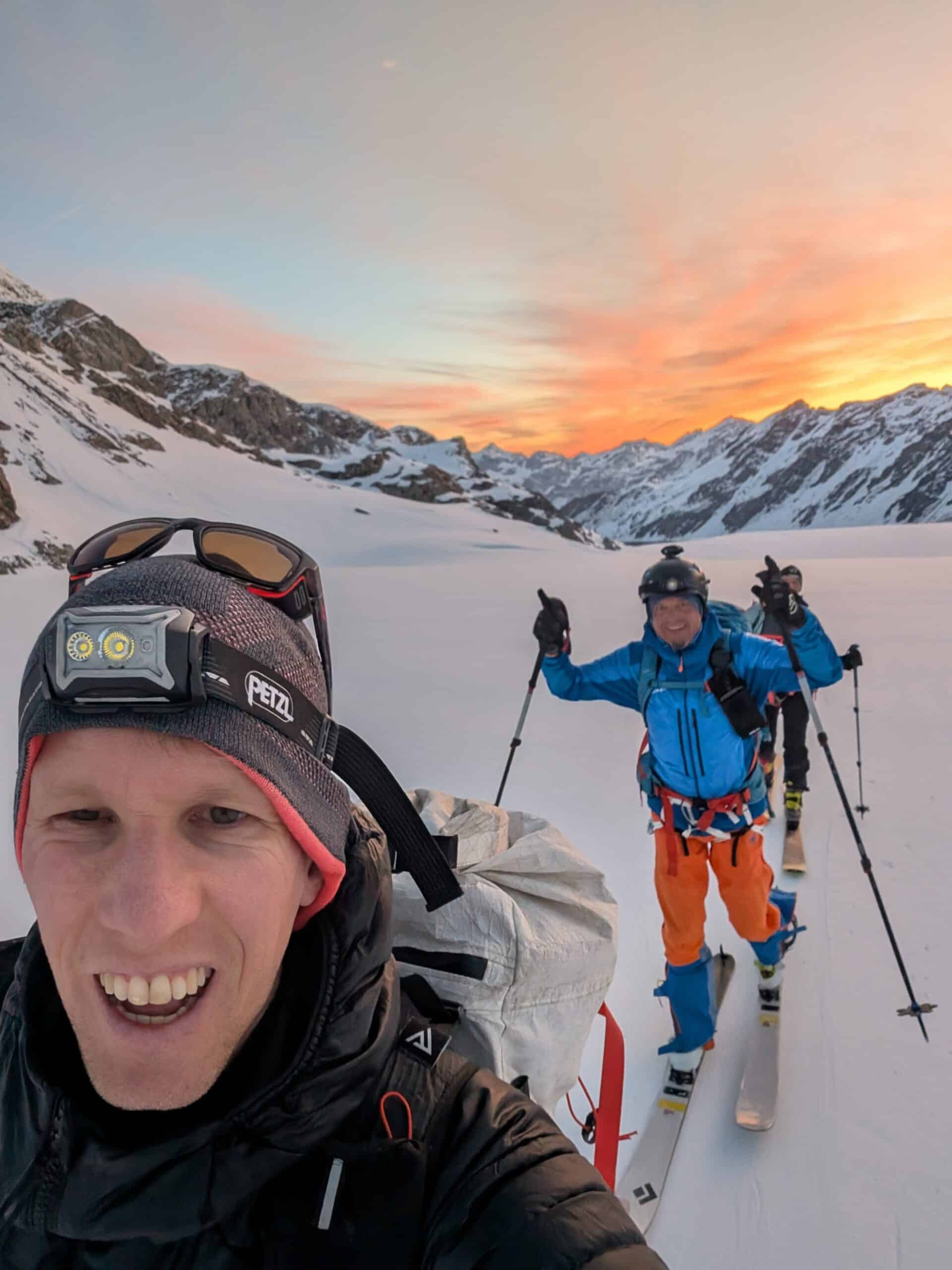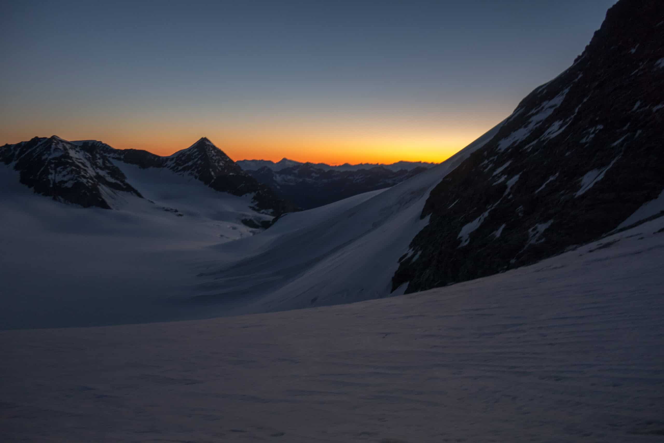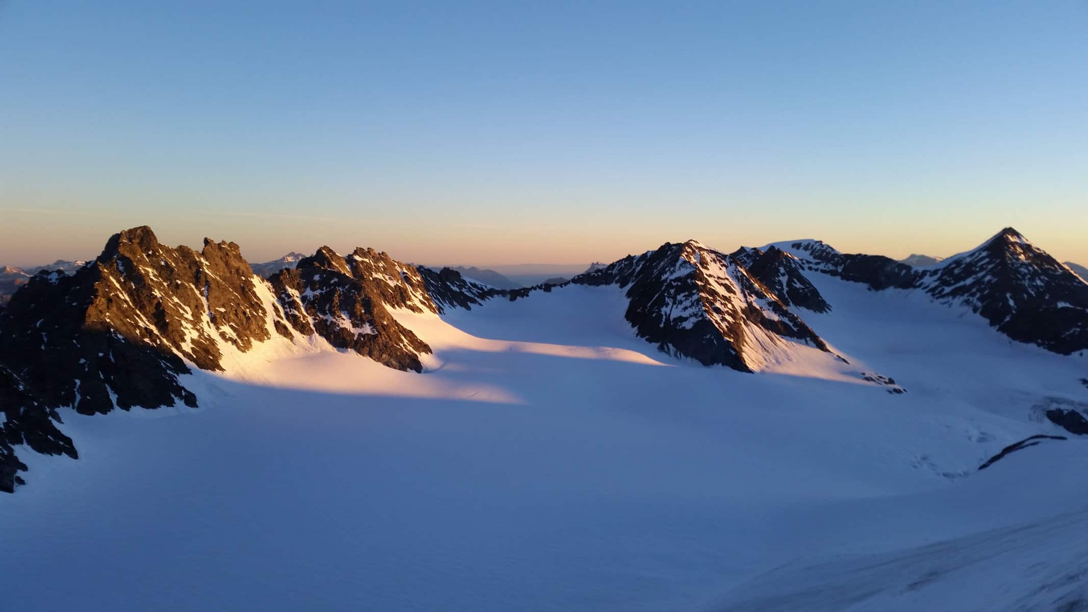 Today is the big day. We set off very early and first cross the cosy glacier to the start. The Couloir du Gardien leads steeply up a few hundred metres, first with skis and then with crampons. There are often a few metres of bare ice. Here we climb up secured in pitches, with ice axe and crampons. On the plateau, we first climb the Combin de Valsorey and then the main summit. The descent is via "La Mur". A steep flank. We often abseil down here. Now comes the last Combin summit, the Combin de la Tsessette. The descent via the corridor is pleasant and often powdery for a long time! We return to the hut happy and cheerful after a long day. This tour leads under glacier collapses at the couloir and the corridor. There is therefore an objective risk of icefall. Of course, we try to minimise this time.