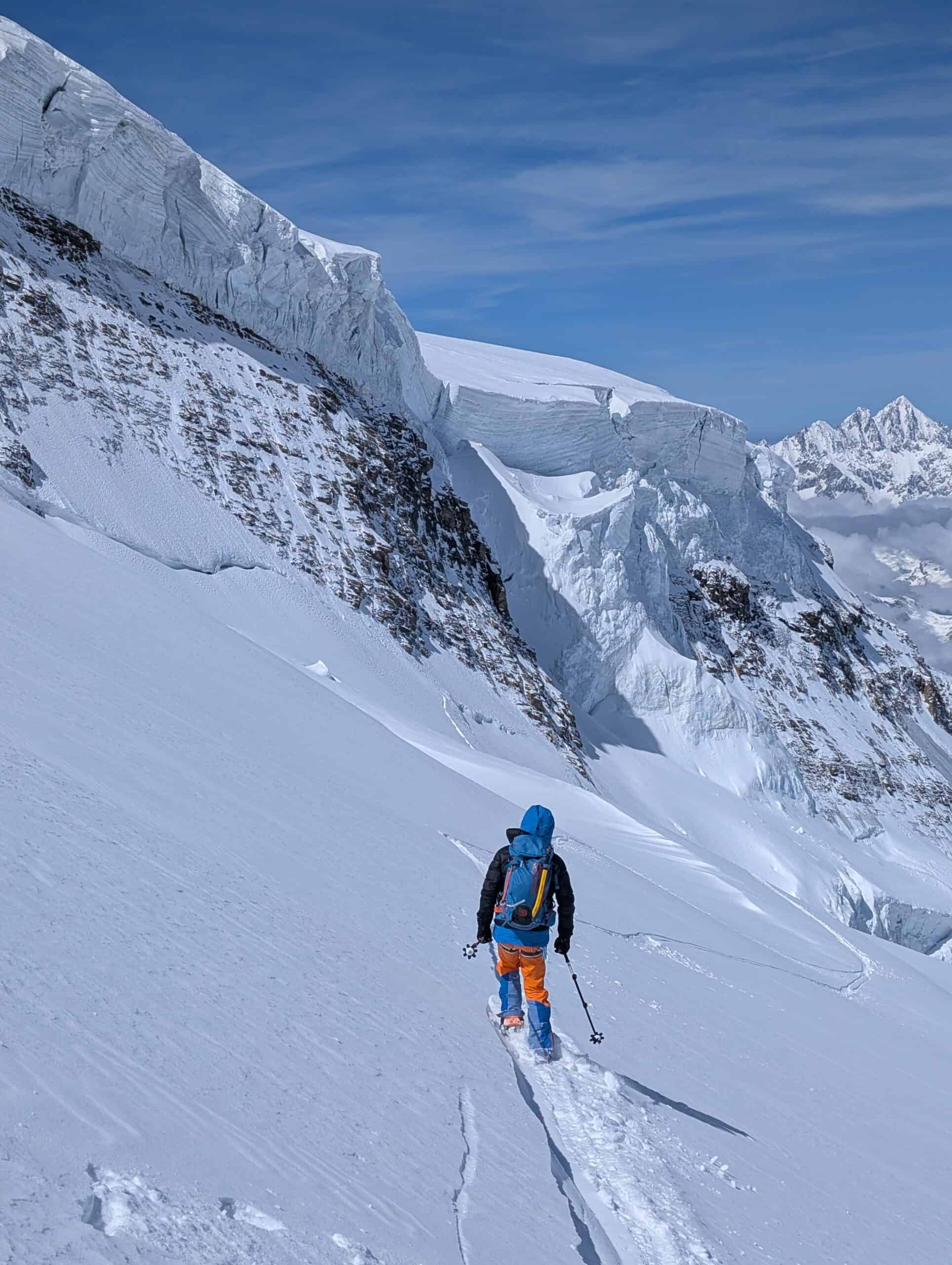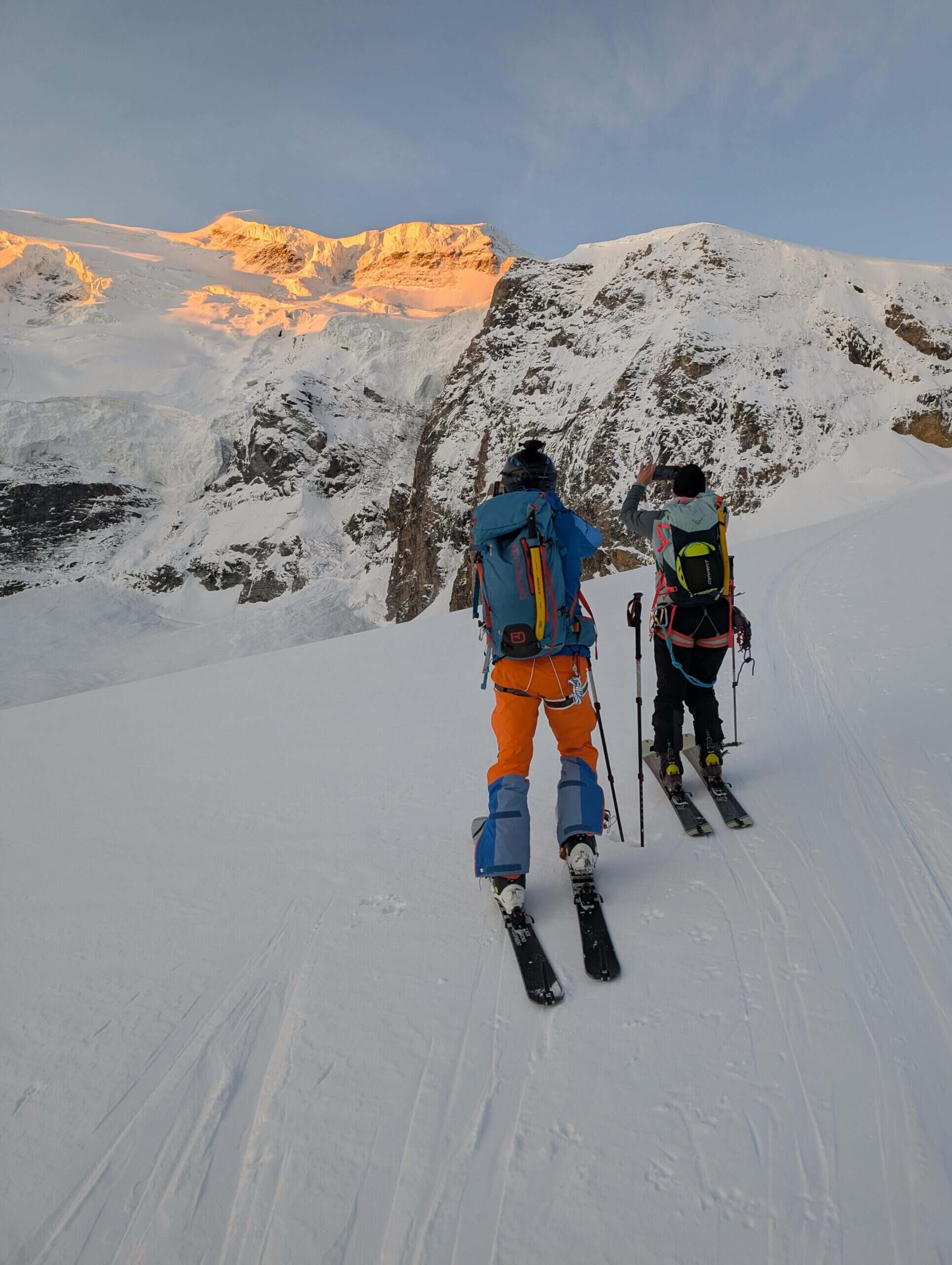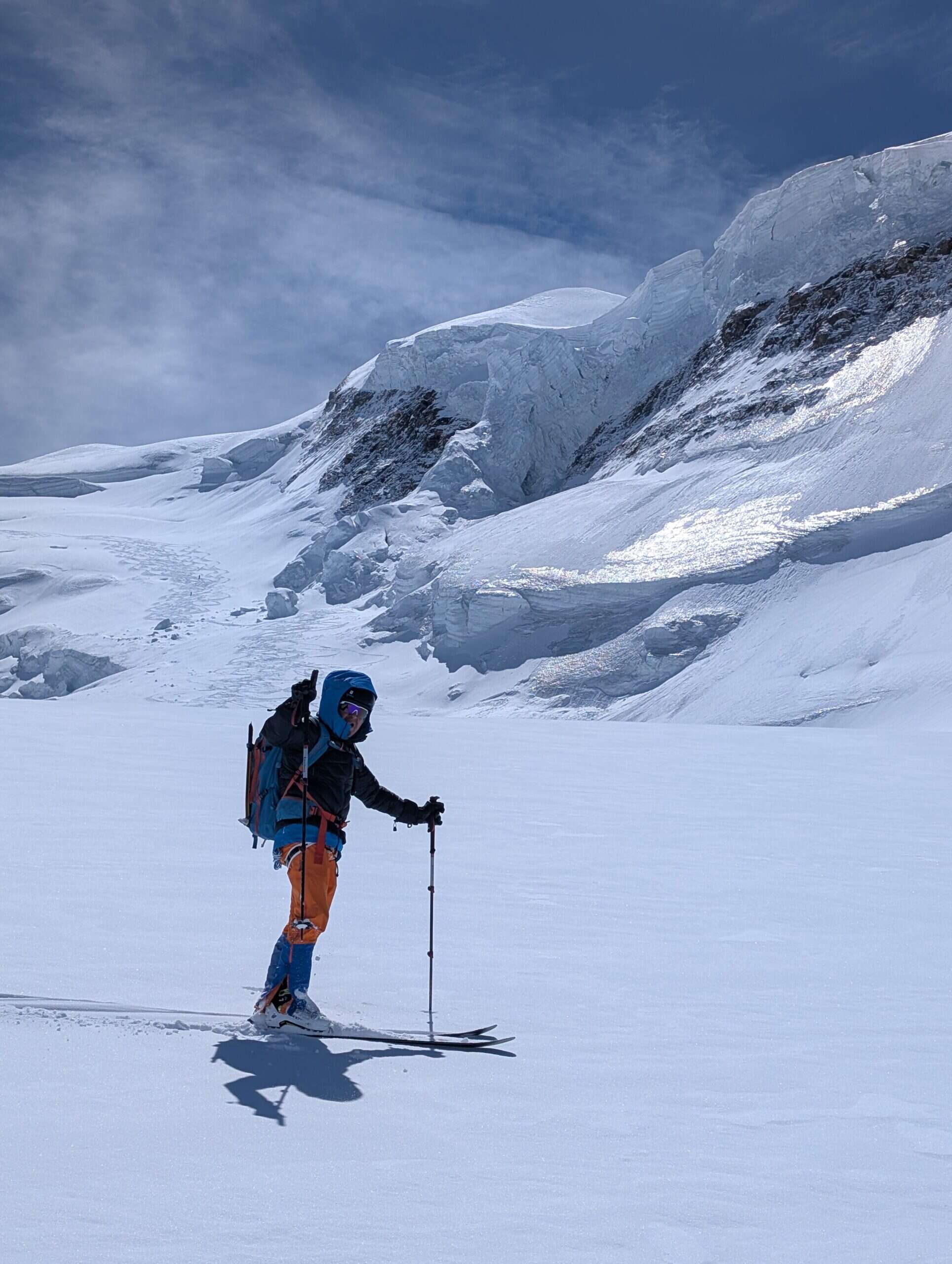 Gigantic glaciers, steep passages in firn and ice and abseiling on skis - that's how we get to the Grand Combin summit!