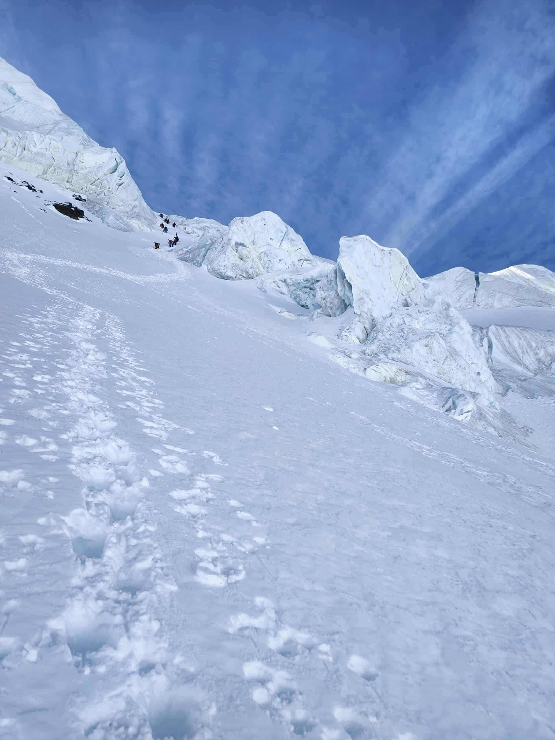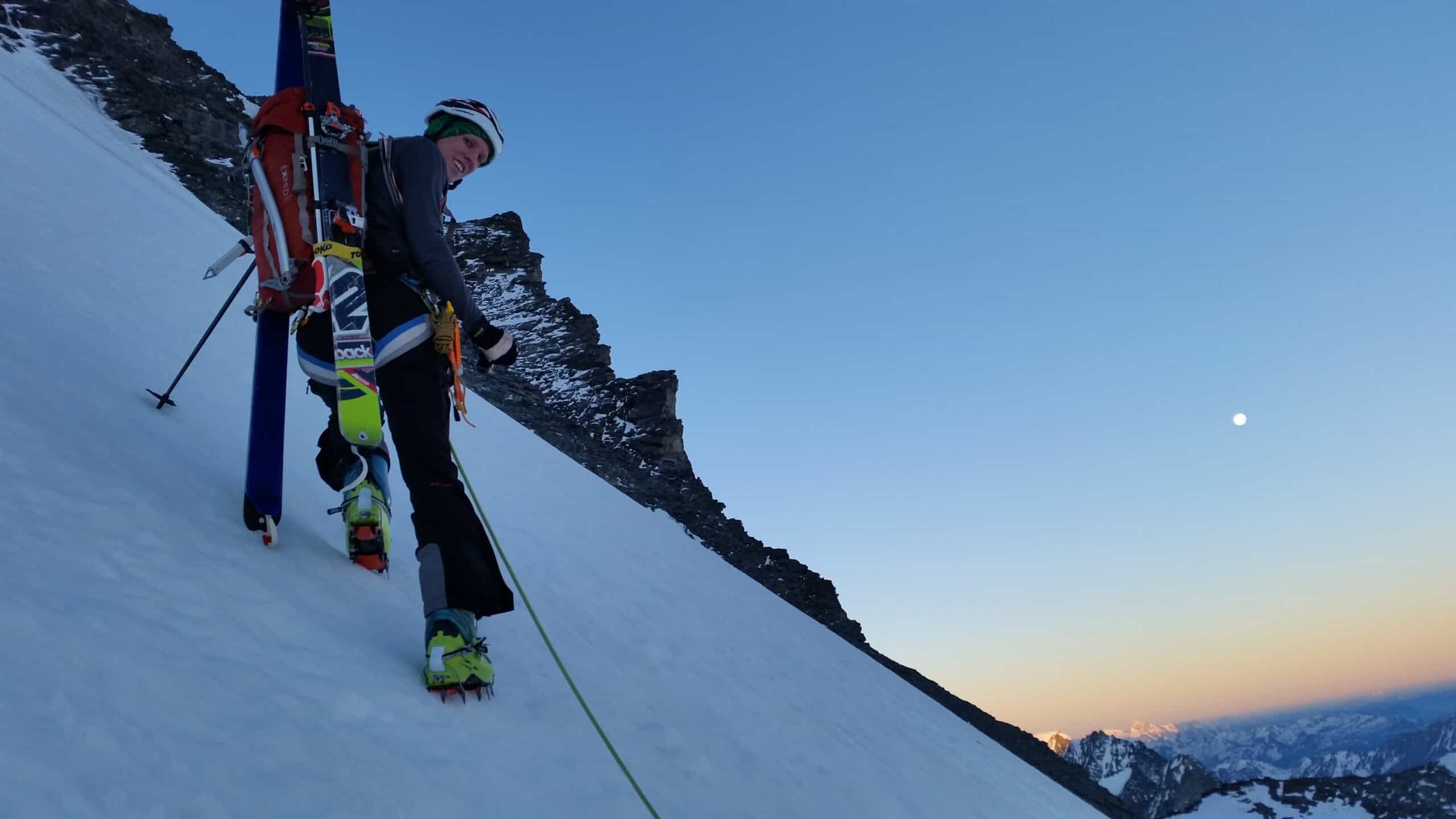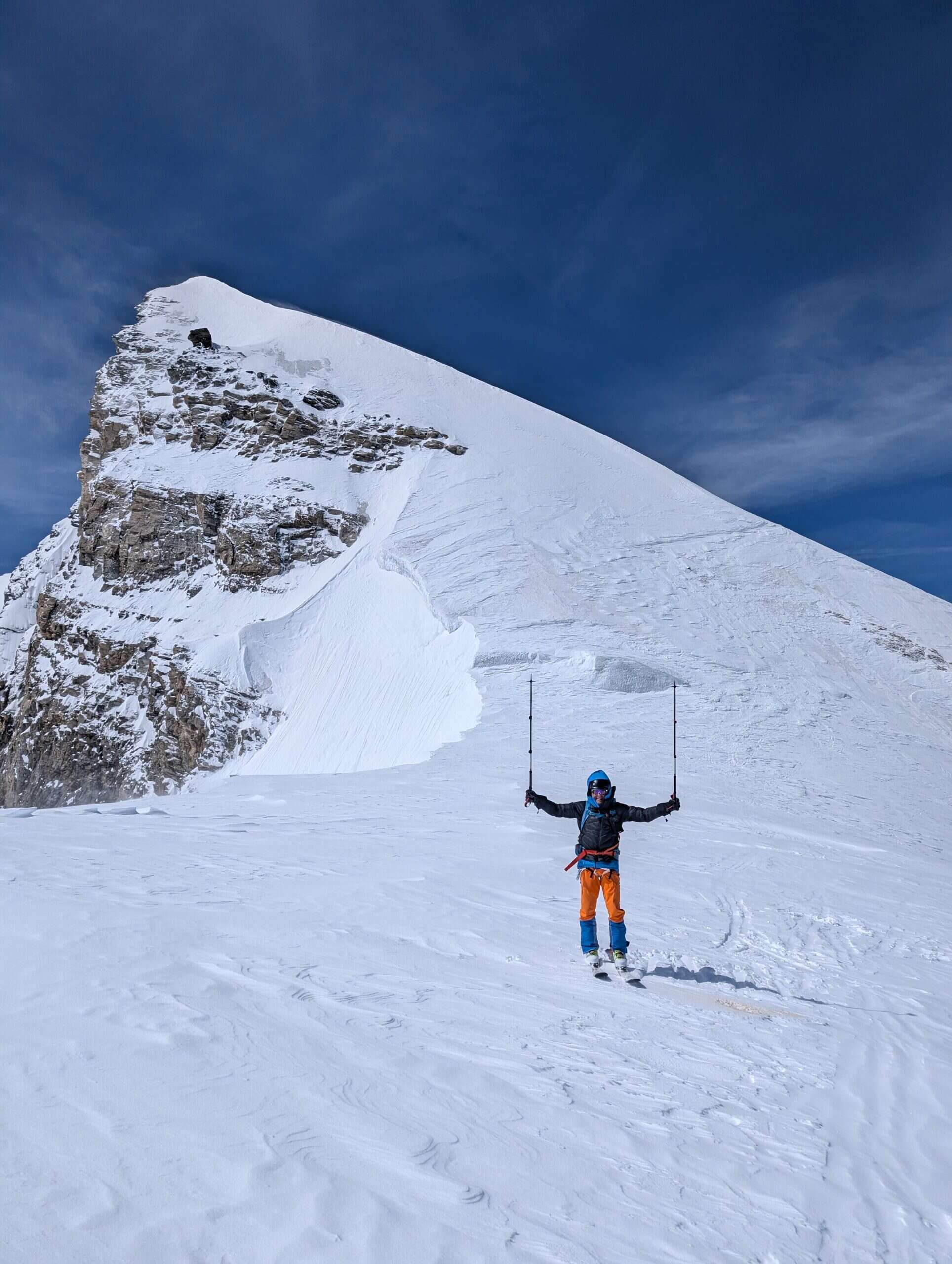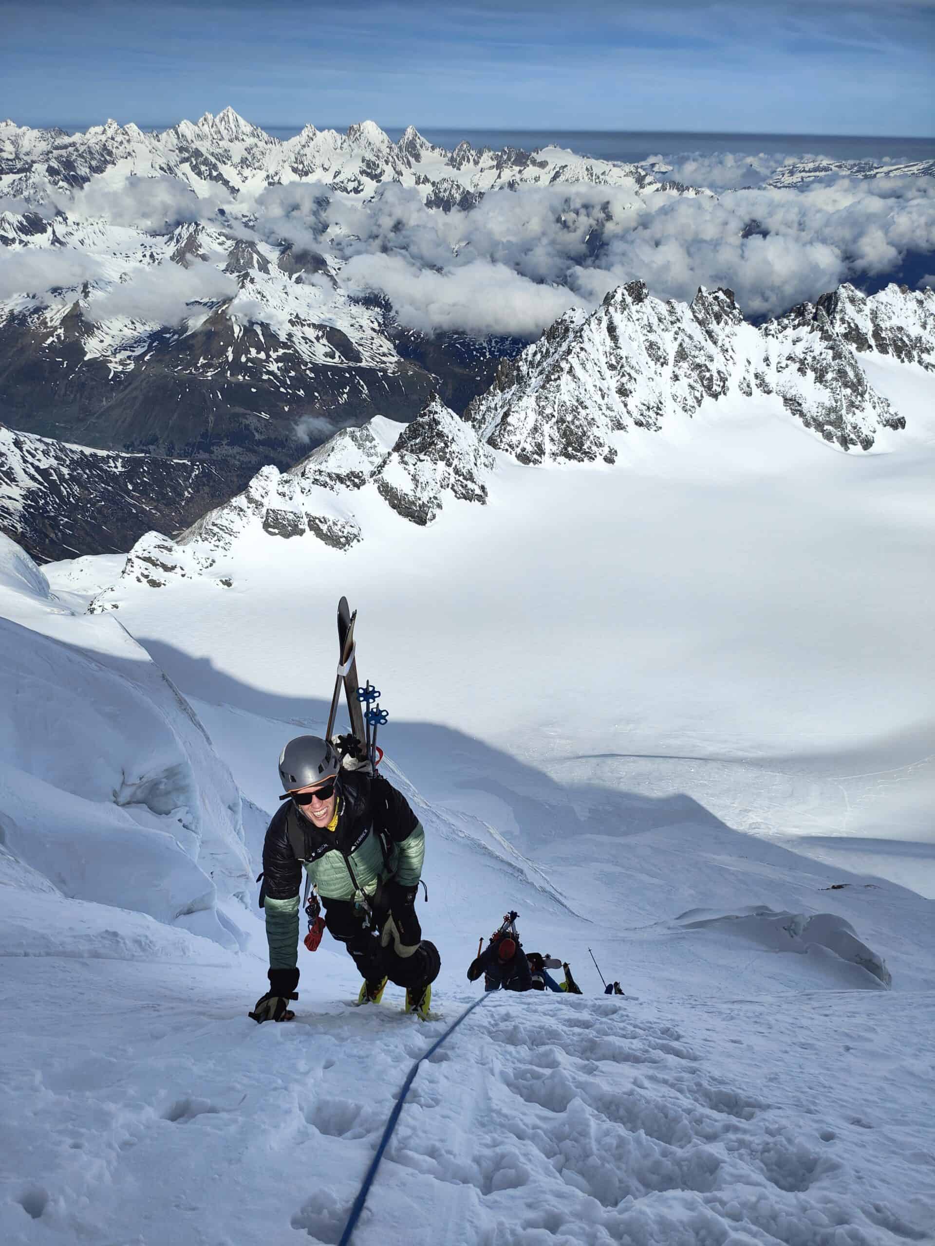 Gigantic glaciers, steep passages in firn and ice and abseiling on skis - that's how we get to the Grand Combin summit!