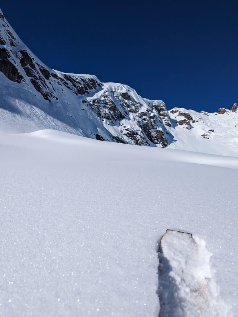 There has been fresh snow again, and next week we can expect fantastic weather! On the north side, the snow remains powdery for a long time, providing perfect conditions for an impressive traverse with a long, north-facing descent. Thanks to the mountain railway, we can start high enough, complete an ascent of around 1000 metres, enjoy the summit and the peace and quiet during the week before tackling the long, north-facing descent. We will probably walk the last few metres to Engi - but after such a descent, we don't mind at all.