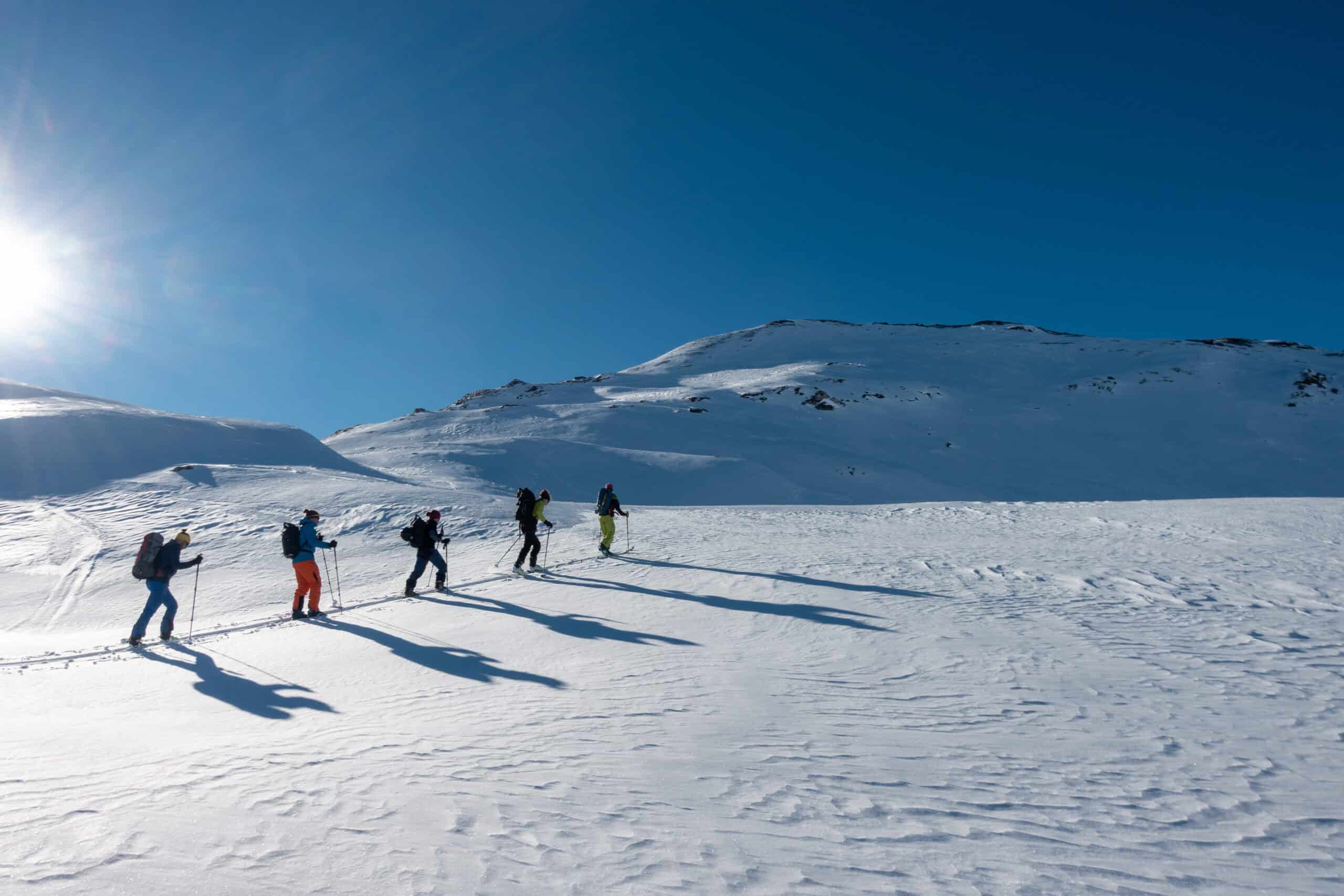 - Mastering the ski touring technique with its basics (skins, hairpin turns).