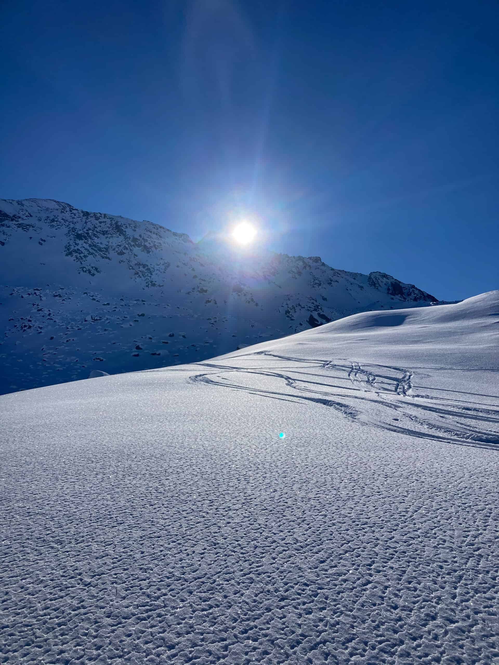 Today we are looking for a pearl in this area, because we want to get as much descent as possible with as little ascent. This is quite possible, as we can ski from Piz d'Err or Tschima da Flix all the way down to the valley, which makes for a descent of around 2,000 metres with an ascent of only 700 metres.