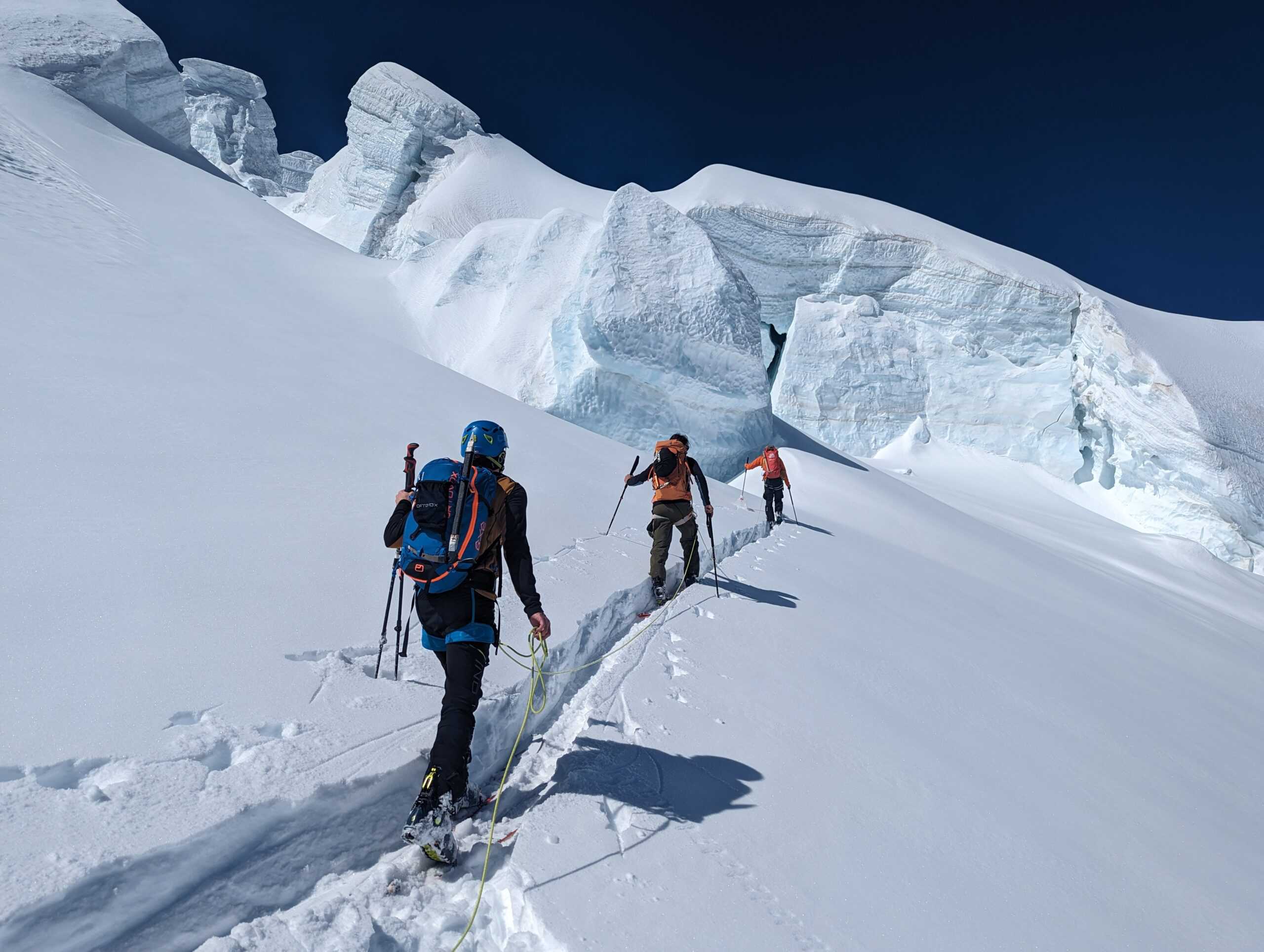 We enjoy Easter in the Monte Rosa region. Thanks to the small Matterhorn cable car, we start high up and immediately immerse ourselves in the impressive world of the great glaciers and high mountains of Zermatt. We will spend two nights in the magnificent Monte Rosa hut, from where we will embark on the most rewarding tours. There are some perfect ski tour destinations with a cool summit, great descents through impressive glaciers and all this in the midst of the impressive high mountain world of the Monte Rosa massif.