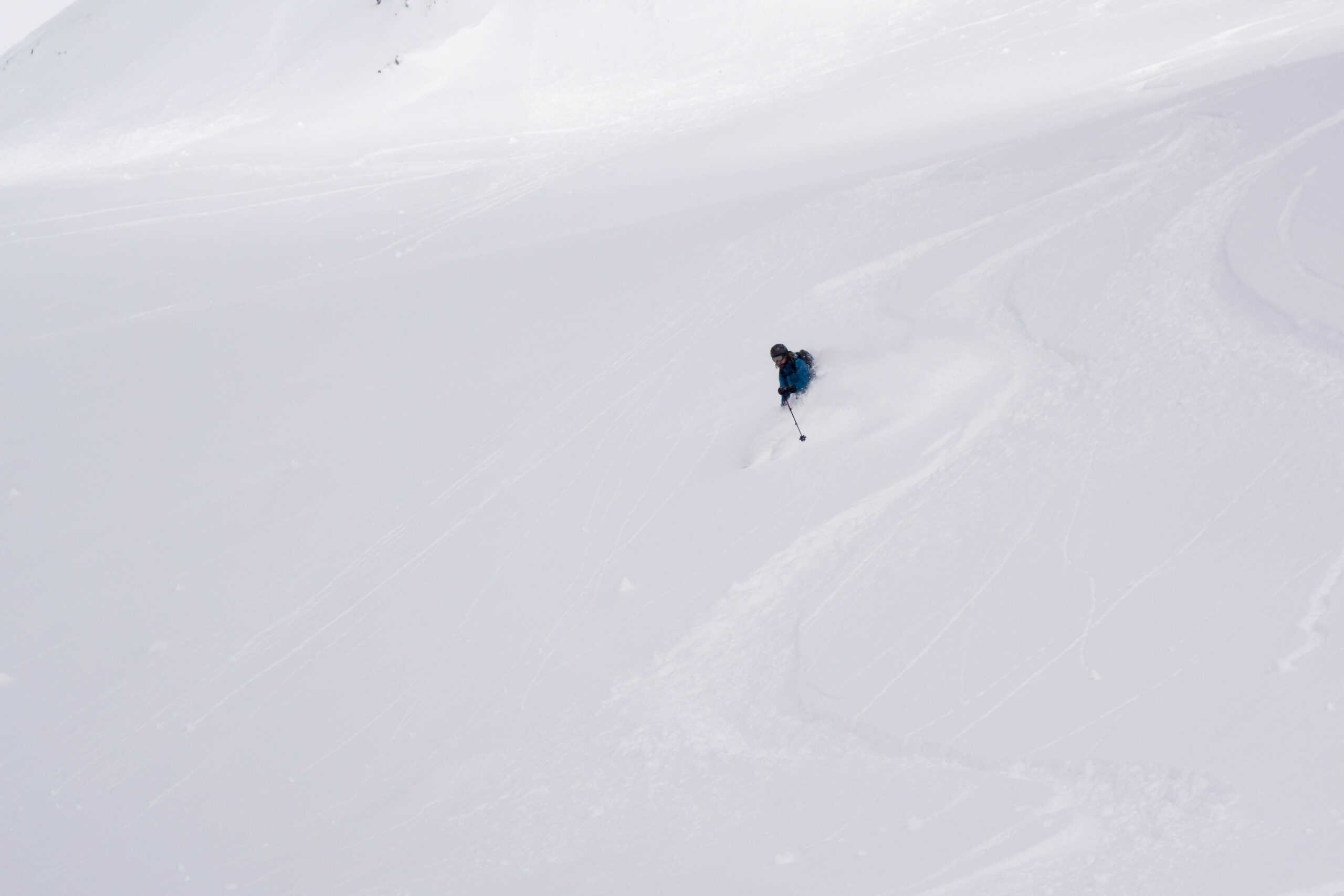 The prevailing conditions determine which valley we descend into - we look for the best snow!