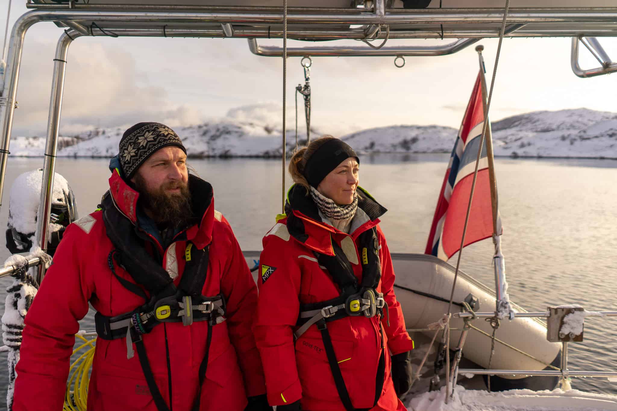 Sailing in the fjords is comfortable and relaxing. Because of the many islands, there is no strong wind and so we can sail comfortably through the fjords. Our skipper is very experienced and knows the Norwegian waters well. If there is no wind, our boat has a motor with which we can cover the distance. We sail around 3 hours per day. We have the opportunity to take over as much of the sailing as we want. Halvard and Ann-Helen are happy to show us the craft of sailing.