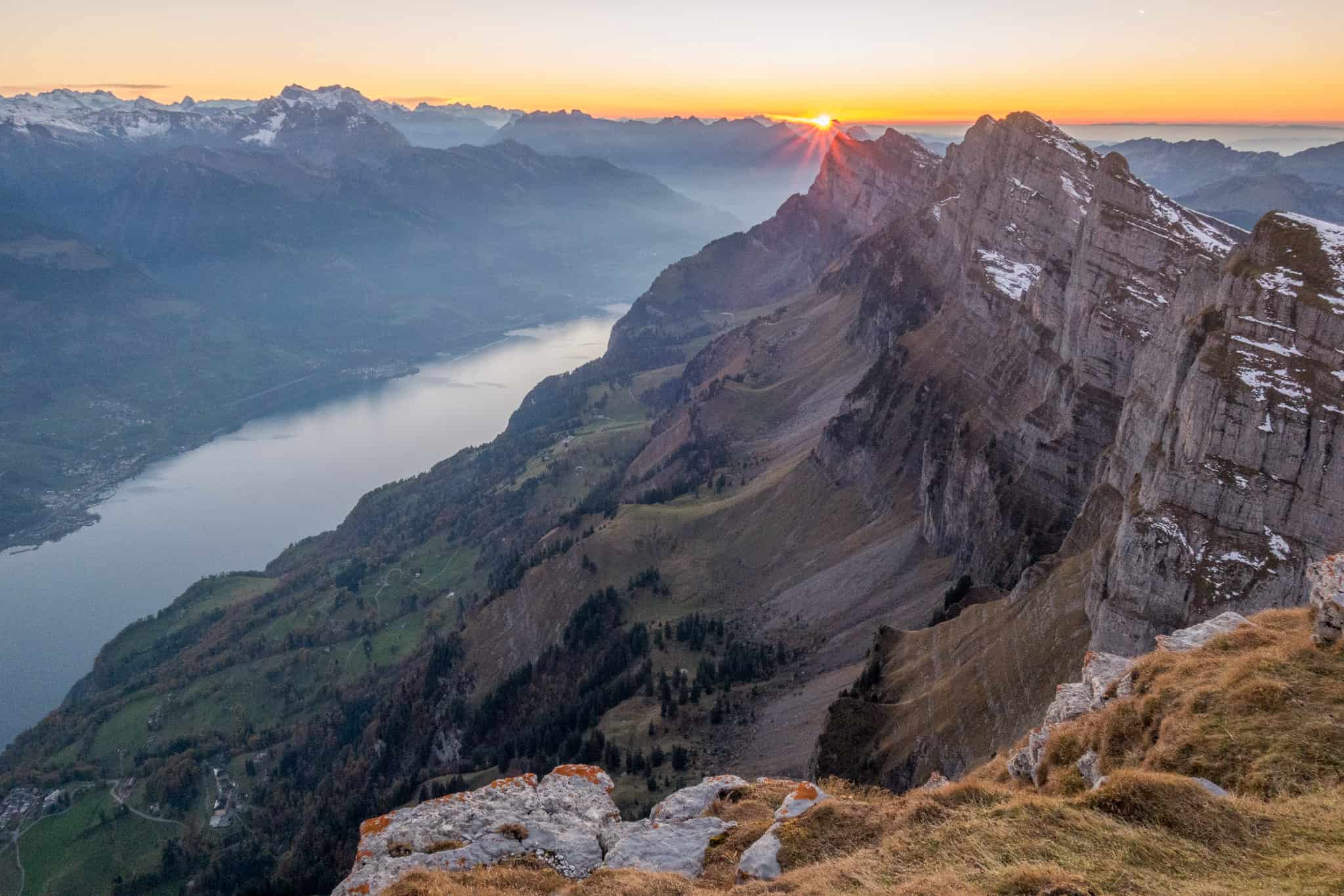 The south faces of the Churfirsten are impressive. They drop steeply down to Lake Walen and offer an airy ambience. Together we climb a relatively easy ascent through the south pillar to the Selun. We climb up 5 pitches on grippy limestone in the 4th degree of difficulty. The final ascent is on the ridge with a magnificent view of the Glarus mountains and Lake Walen far below! We simplify the approach with the rustic Selun railway. From here we climb up to the "Rappenloch", where we abseil down and reach the start. The descent is a leisurely walk back along the hiking trail. What a tour with a magnificent ambience!