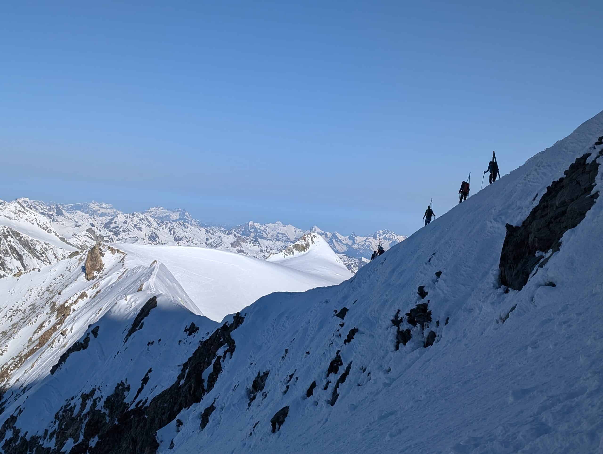 The Tour du Ciel is one of the most impressive ski crossings in the Swiss Alps. Starting in Zermatt, it leads northwards from hut to hut between the really big four-thousand-metre peaks and over their glaciers. Again and again we cross steep cols, firn ridges or descend through small couloirs. A challenging ski tour in impressive surroundings! We tackle this project together and experience the high mountain world to the full!
