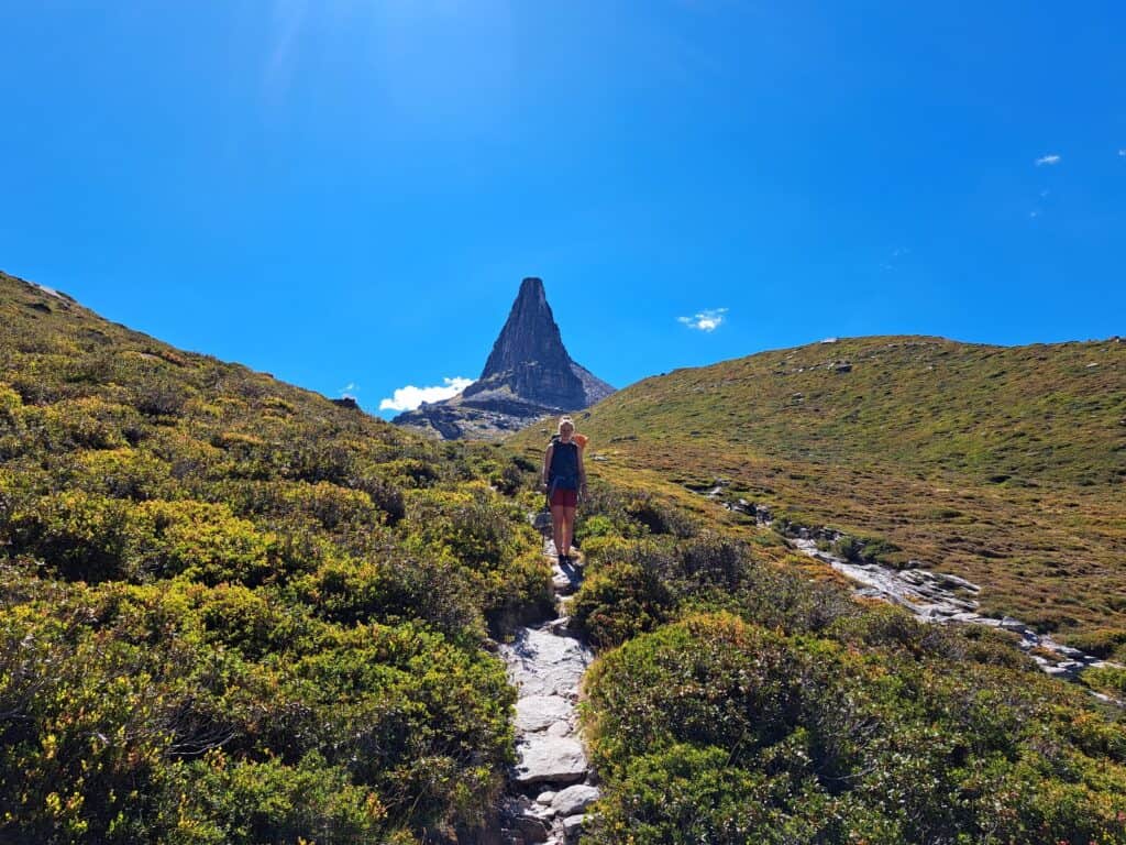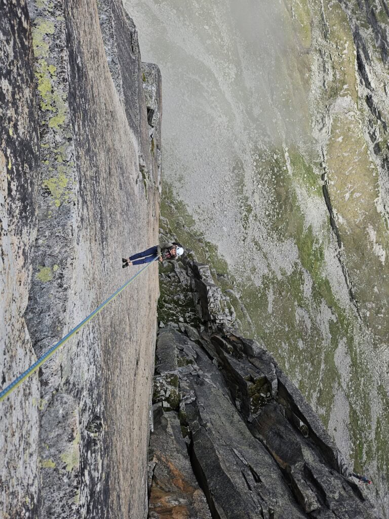 - Stamina for an approach of approx. 3 hours, a climbing tour of 9 pitches plus descent on the same day.
